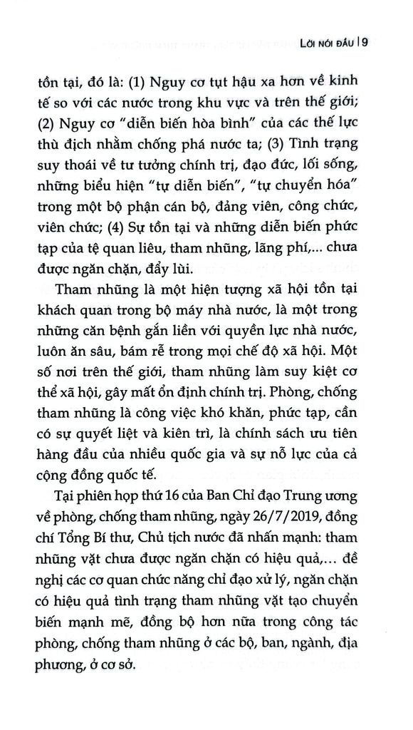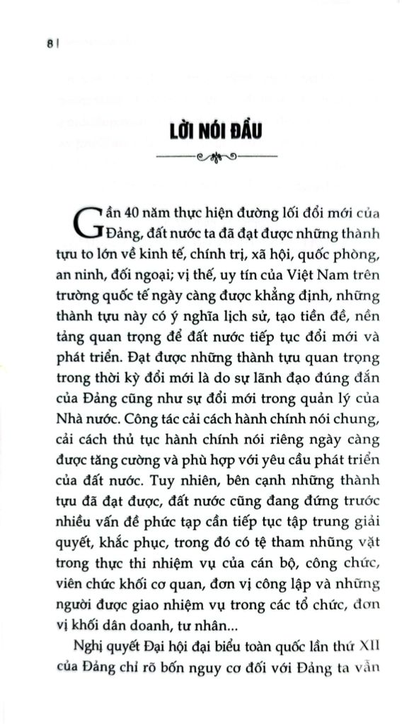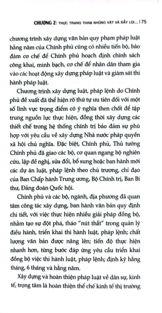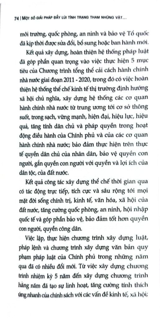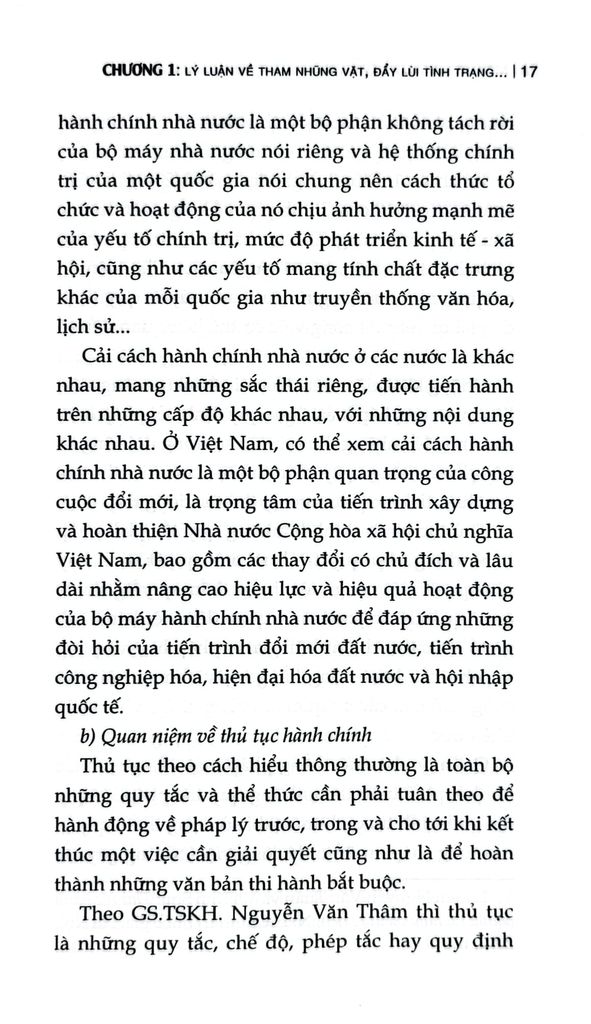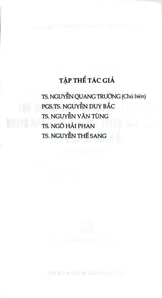Cuốn sách chuyên khảo Một số giải pháp đẩy lùi tình trạng tham nhũng vặt trong giải quyết các thủ tục hành chính ở nước ta hiện nay do TS. Nguyễn Quang Trường làm Chủ biên. Trên cơ sở vận dụng quan điểm, đường lối, chủ trương của Đảng, chính sách, pháp luật của Nhà nước về phòng, chống tham nhũng, cuốn sách phân tích, làm rõ đặc trưng, biểu hiện và tác hại của tham nhũng vặt; chỉ ra những nguyên nhân từ cả phía thể chế, cơ chế, chính sách, công tác tổ chức thực hiện đến yếu tố con người, đạo đức công vụ. Đồng thời, cuốn sách cũng phản ánh thực trạng công tác đấu tranh phòng, chống tham nhũng vặt thời gian qua, những kết quả, hạn chế, bất cập đặt ra; từ đó xác định mục tiêu, quan điểm và đề xuất hệ thống giải pháp nhằm tạo chuyển biến thực chất trong việc phòng ngừa, ngăn chặn,đẩy lùi tình trạng này.