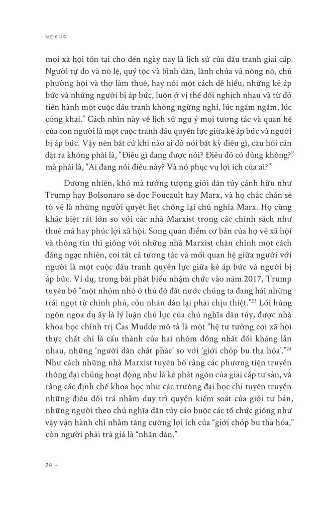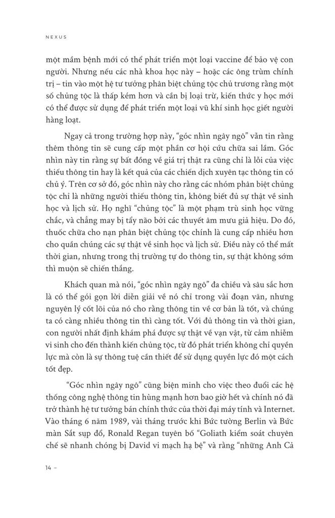 “Chúng ta đang sống trong cuộc cách mạng thông tin sâu sắc nhất trong lịch sử loài người, nhưng chúng ta không thể hiểu được nó, trừ khi chúng ta hiểu những gì đã xảy ra trước đó. Rốt cuộc, lịch sử không phải là nghiên cứu về quá khứ - mà là nghiên cứu về sự thay đổi. Nó dạy chúng ta những gì vẫn giữ nguyên, những gì thay đổi và mọi thứ thay đổi như thế nào. Tuy nhiên, lịch sử không phải là tất định luận, và NEXUS không cho rằng hiểu được quá khứ cho phép chúng ta dự đoán được tương lai. Mục tiêu của tôi là chỉ ra rằng: bằng cách đưa ra những lựa chọn sáng suốt, chúng ta vẫn có thể ngăn chặn những kết quả tồi tệ nhất. Bởi vì nếu chúng ta không thể thay đổi tương lai, thì tại sao lại lãng phí thời gian thảo luận về nó?”.