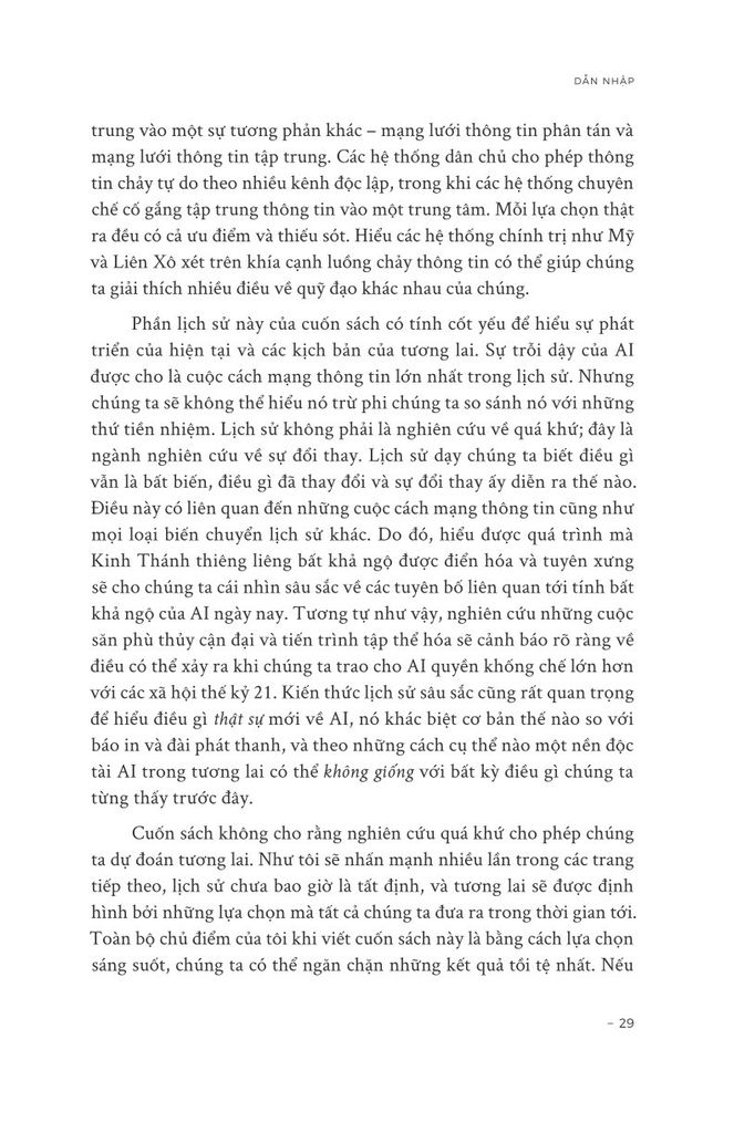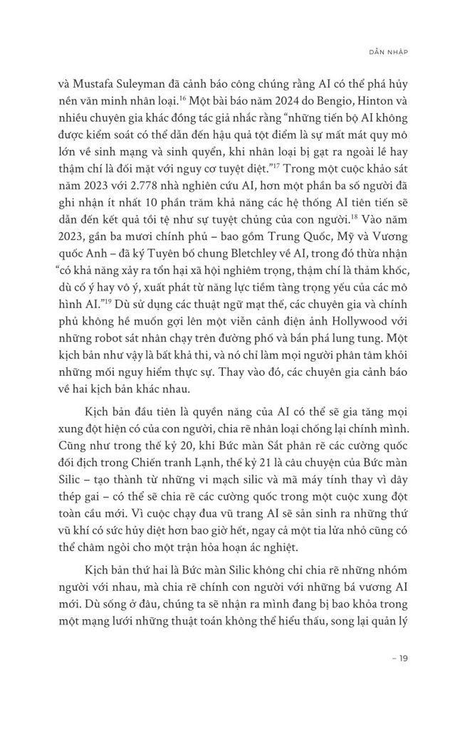 Cùng với đó là sự phát triển của AI đã tiến bộ vượt xa tưởng tượng. AI có thể suy nghĩ chủ động, tự tạo ra thông tin, ý tưởng mới, tác động đến toàn xã hội. Thông qua nhiều ví dụ, tác giả muốn nói AI là thế lực vô cùng hùng mạnh mà con người chưa hiểu tường tận và cũng chưa có cơ chế kiểm soát tốt đối với chủ của AI như Google.