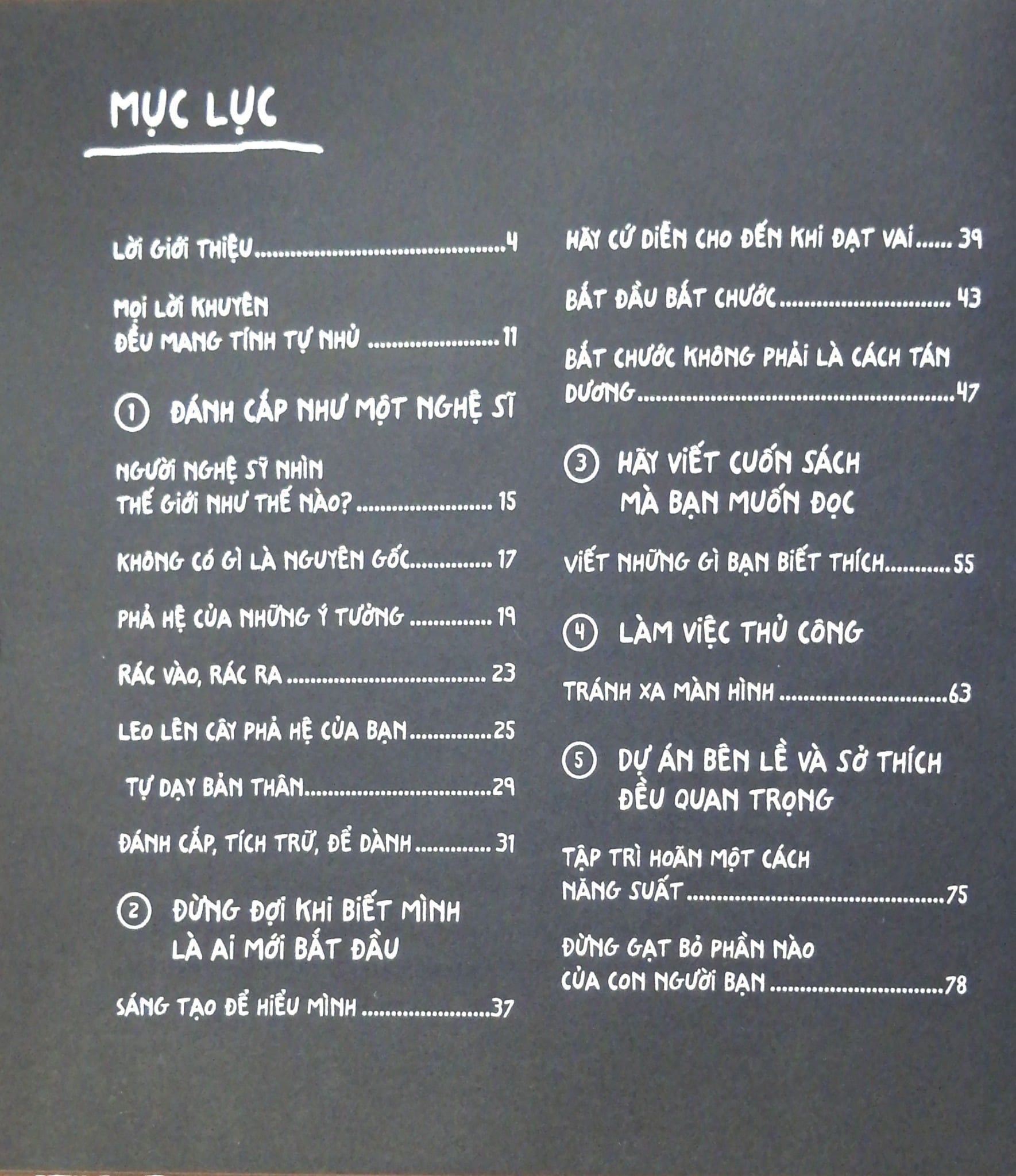 Sách của tác giả Austin Kleon. Ông là nhà văn, và nghệ sĩ sống tại Austin, Texas, là tác giả của 3 cuốn sách bán chạy trên New York Times : Nghệ thuật « đánh cắp » ý tưởng ; Nghệ thuật PR bản thân ; Cứ làm đi và Newspaper Blackout