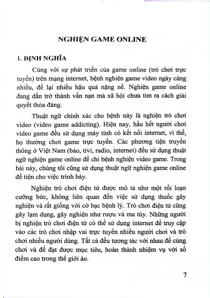 Cùng với sự phát triển của internet, nghiện game online đã trở thành vấn nạn thực sự cho nhiều quốc gia, trong đó có Việt Nam. Nghiện game online rất phổ biến, tỷ lệ người nghiện game online có thể chiếm tới 10% số thanh, thiếu niên trong độ tuổi 15 - 25.