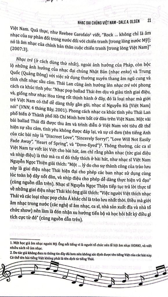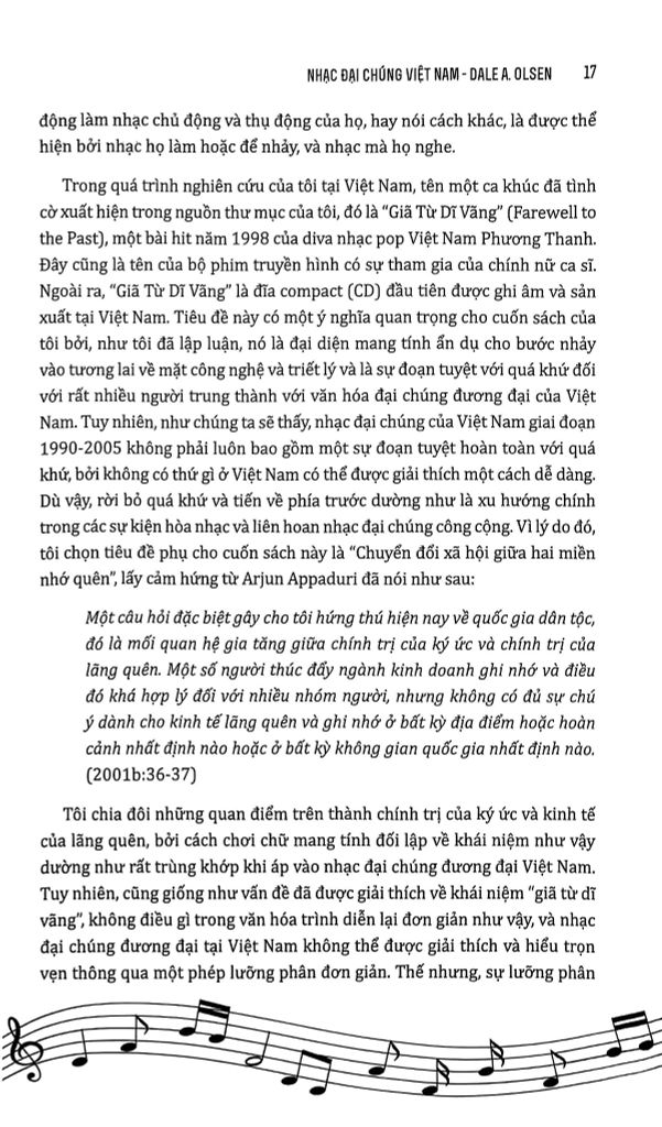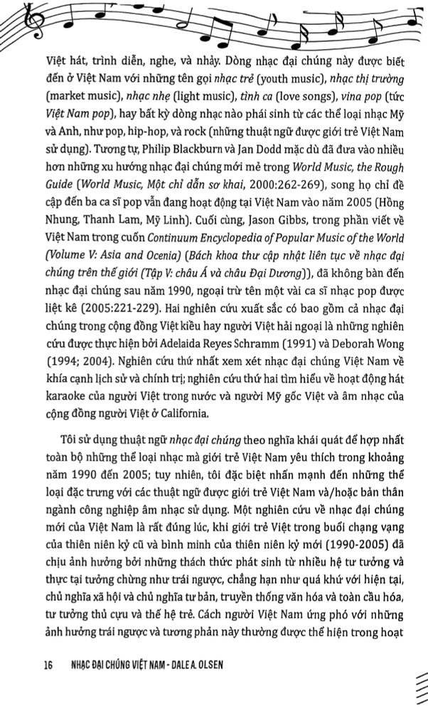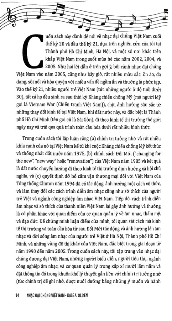 Cuốn sách “Nhạc Đại Chúng Việt Nam: Chuyển Đổi Xã Hội Giữa Hai Miền Nhớ Quên” của Dale A. Olsen là một nghiên cứu sâu sắc về sự phát triển của nhạc đại chúng Việt Nam trong bối cảnh xã hội, chính trị và văn hóa từ cuối thế kỷ 20 đến đầu thế kỷ 21.