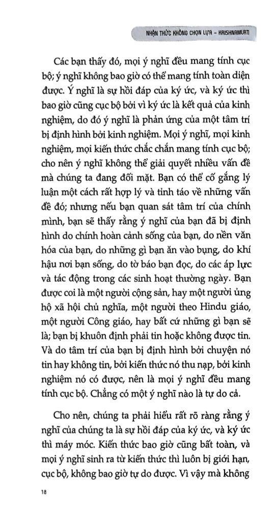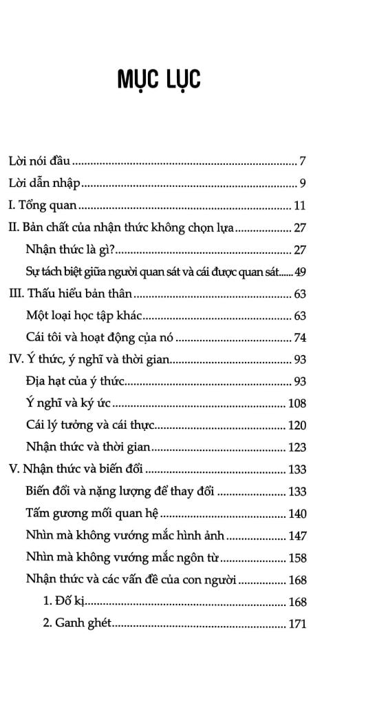 Nhận thức không chọn lựa không dành để đọc vội. Nó là một bản thể sống cần được ở cùng - từng trang là một gợi mở để ta dừng lại, quan sát tâm trí mình đang vận hành, và tự hỏi: liệu còn điều gì chân thực hơn những điều tôi đang nghĩ? Liệu còn cách sống nào khác ngoài việc liên tục phản ứng theo những câu chữ đã có?