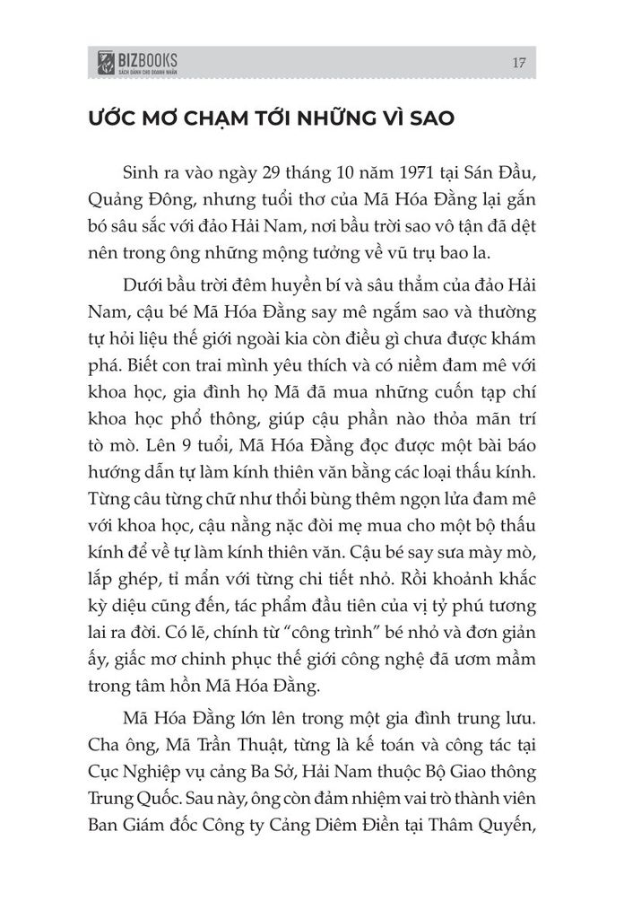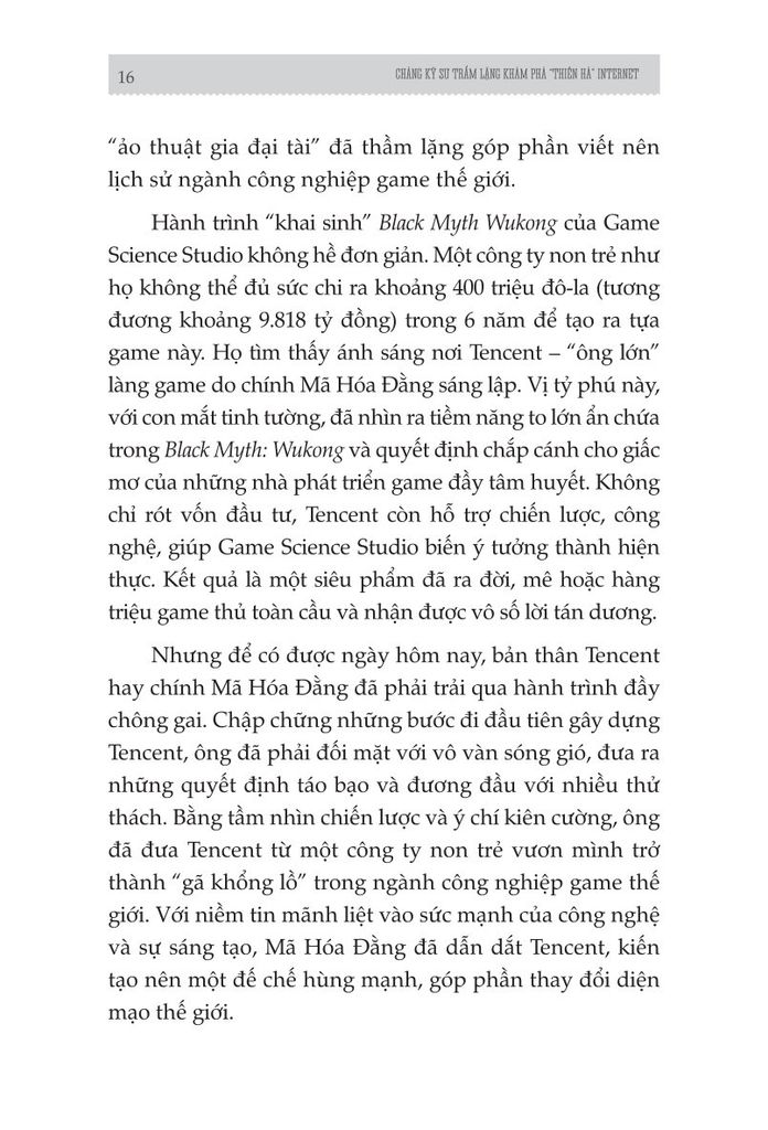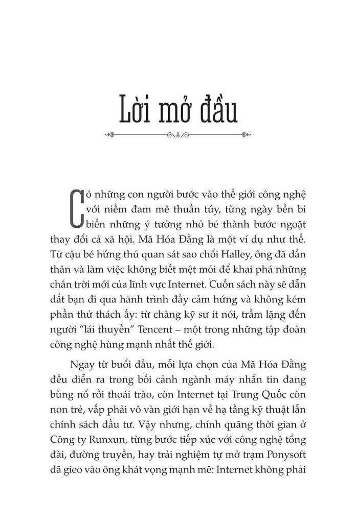 Cuốn sách Mã Hóa Đằng: Người biến "mười xu" thành tỷ đô trong thế giới số giúp bạn thấy rõ bức tranh hoàn chỉnh hơn về người đàn ông “kín tiếng” nhưng vẽ nên một đế chế công nghệ trù phú, về những nước cờ táo bạo và bài học đầy thực tế. Đằng sau mỗi lần QQ suýt sụp đổ, đằng sau mỗi cuộc đối đầu pháp lý, hay sự chuyển giao từ PC sang di động, đều có dấu ấn đậm nét của Mã Hóa Đằng – vị CEO trầm lặng làm nên điều vĩ đại. Cuốn sách cũng phân tích rõ sự lớn mạnh và ảnh hưởng của Mã Hóa Đằng, và Tencent được biết đến từ những tư duy mới mẻ của họ và tiến gần hơn tới công nghệ và thương mại.