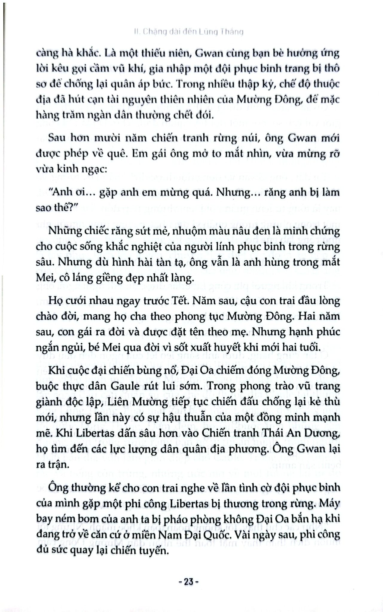 Trong khi đó, quá khứ đẫm máu của Mường Đông - từ chiến tranh rừng núi, những trận phục kích tàn khốc ở Lũng Thắng cho đến ký ức kinh hoàng của vụ thảm sát Redville-4 - liên tục trỗi dậy qua lời kể của những nhân vật từng sống sót. Những người lính, những nhà báo, những chiến binh phục binh, mỗi người mang theo một mảnh lịch sử, một vết thương không bao giờ liền sẹo.
