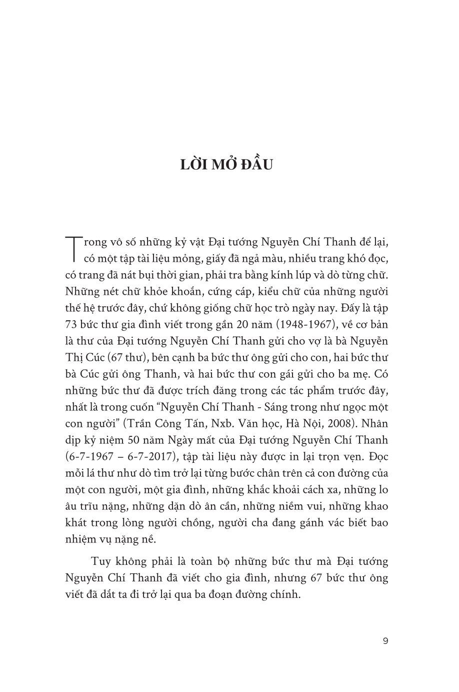 Bìa sách khắc họa hình ảnh chồng thư tay, phong bì và giấy viết tay theo phong cách ký họa, gắn liền trực tiếp với nội dung thư từ giữa Đại tướng Nguyễn Chí Thanh và gia đình. Tông màu be ngà gợi nên không khí xưa cũ, hoài niệm, làm nổi bật chiều sâu tình cảm và giá trị lịch sử của tác phẩm.