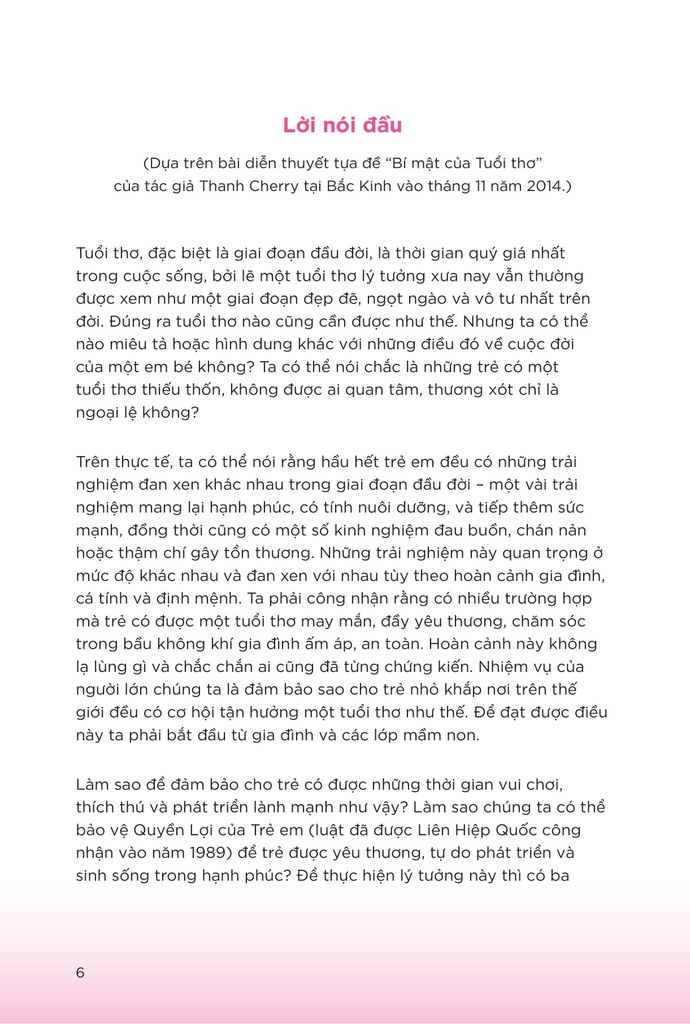 “Nghệ thuật nuôi dạy con là nghệ thuật truyền cảm hứng cho trẻ học được một nghệ thuật sống, biết yêu thương và học hỏi.” – Thanh Cherry