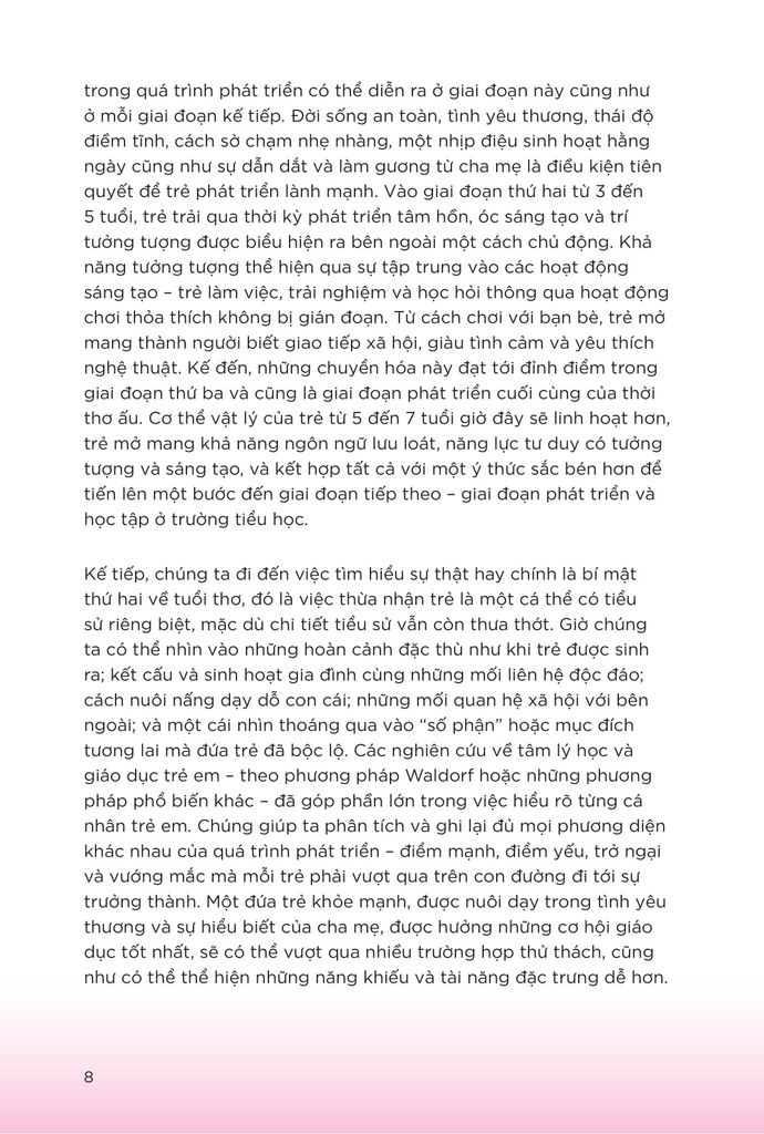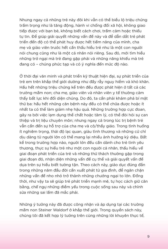 Quyển sách “Nghệ thuật nuôi dạy con” mang đến cho độc giả cơ hội để khám phá phương pháp nuôi dạy trẻ từ 0 đến 7 tuổi đã được minh chứng khắp toàn cầu – phương pháp giáo dục Steiner. Giáo dục Steiner là phương pháp giúp trẻ mở mang tối đa những tiềm năng trong mình, về phương diện thể chất, xã hội, tình cảm và tinh thần. Bằng cách thừa nhận và nuôi dưỡng trí tưởng tượng cùng tinh thần sáng tạo có sẵn từ bên trong trẻ, cha mẹ sẽ giúp con mình: