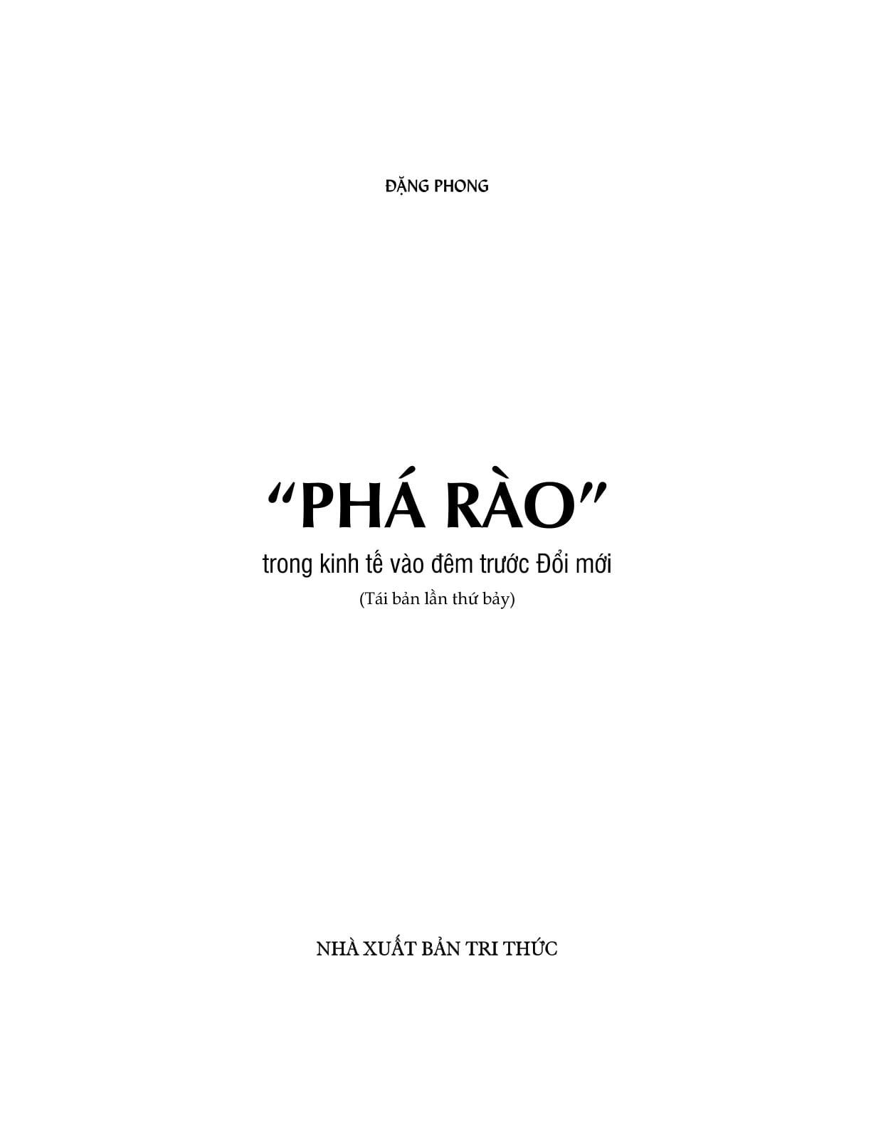 Sách nằm trong bộ sách gồm 2 cuốn “Phá rào” trong kinh tế vào đêm trước Đổi mới” và “Tư duy kinh tế Việt Nam 1975–1989” của nhà sử học kinh tế Đặng Phong do Omega+ và Nhà xuất bản Tri Thức hợp tác xuất bản.
