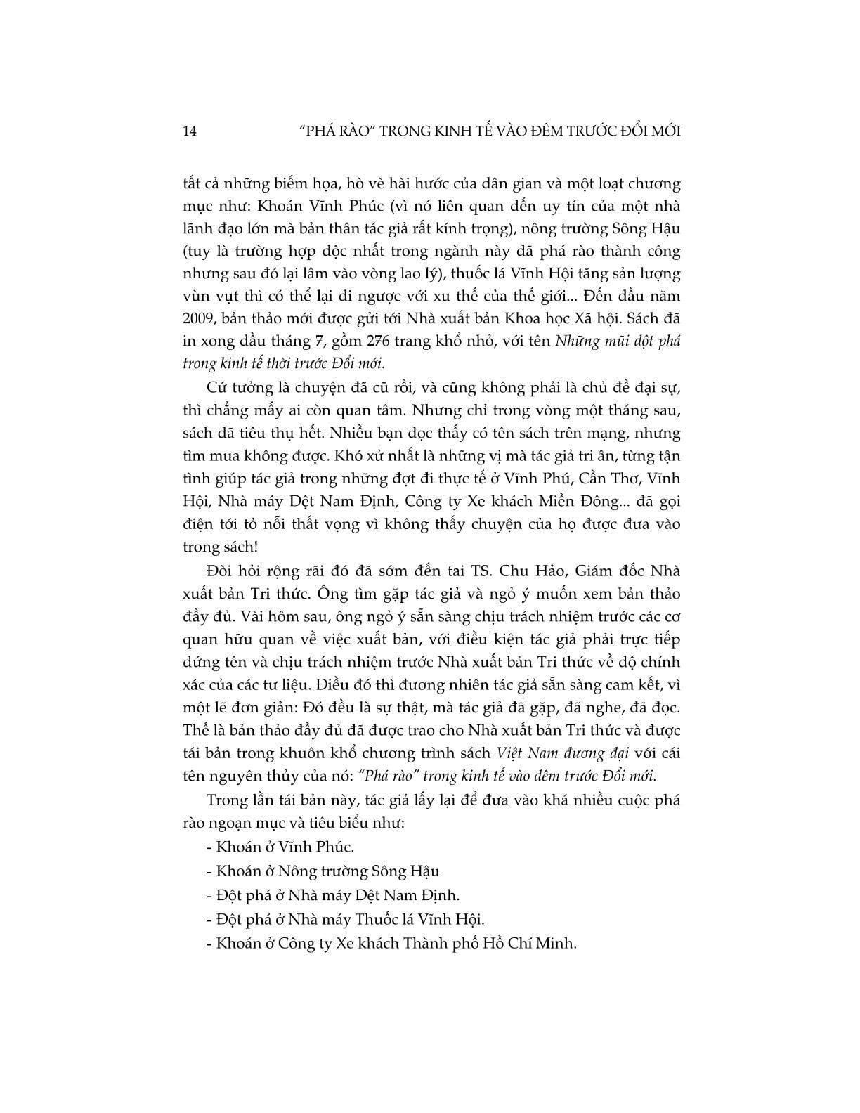 "Phá rào" trong kinh tế vào đêm trước Đổi mới, NXB Tri Thức, 2009.
