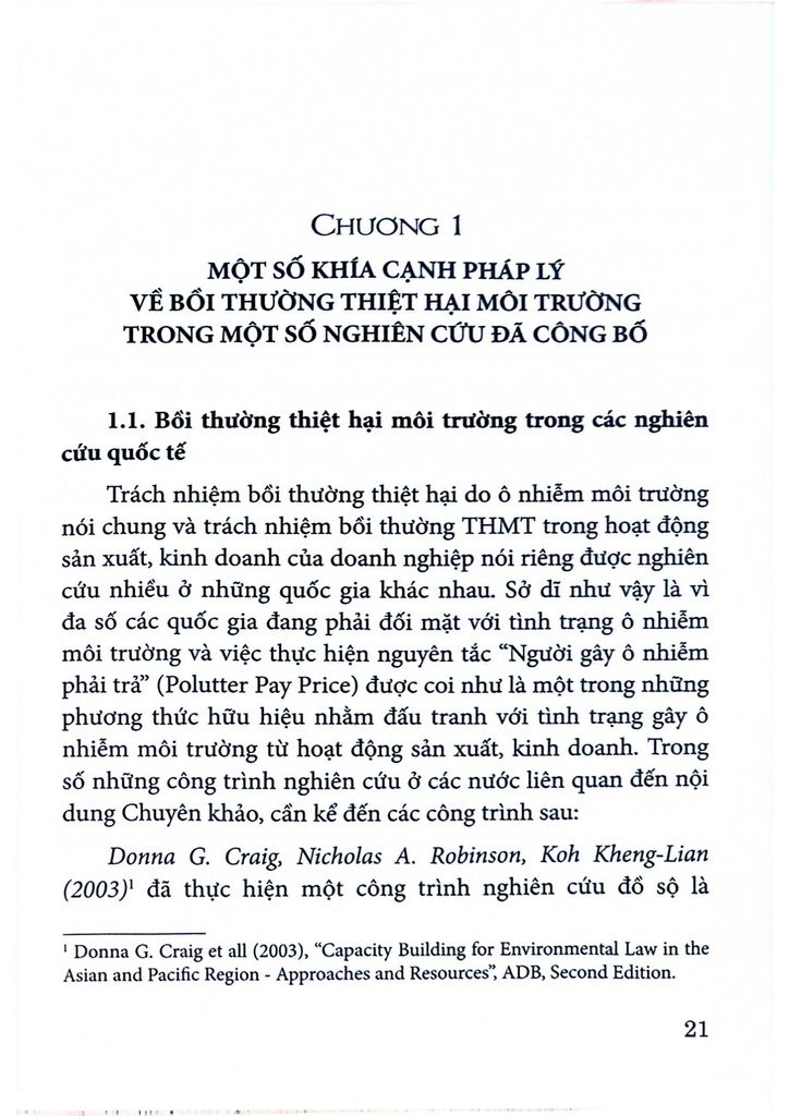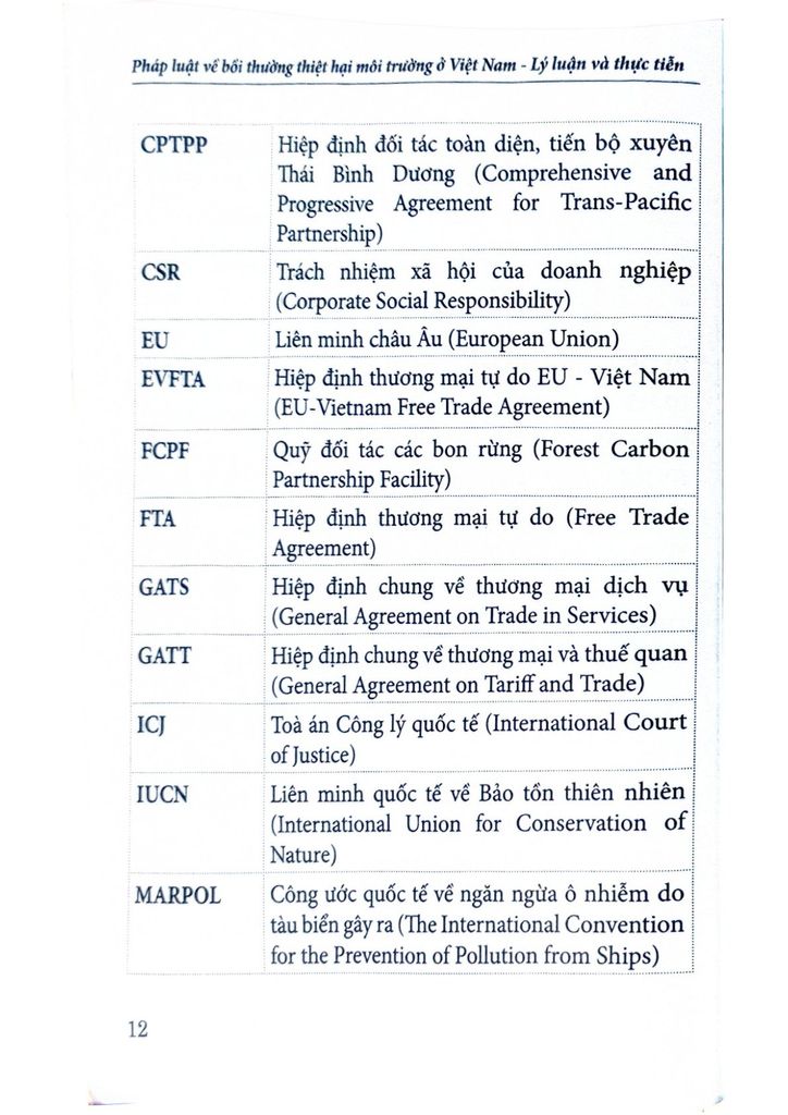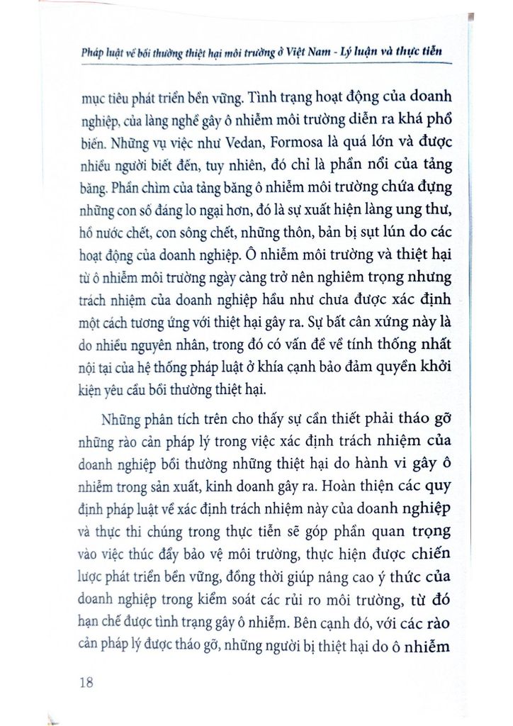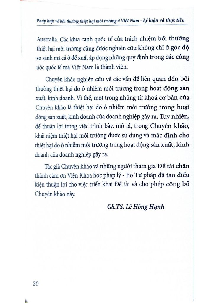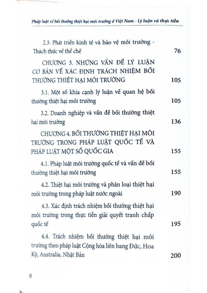 Hy vọng cuốn sách là tài liệu tham khảo hữu ích cho những ai quan tâm đến vấn đề bảo vệ môi trường và bồi thường thiệt hại môi trường ở Việt Nam.