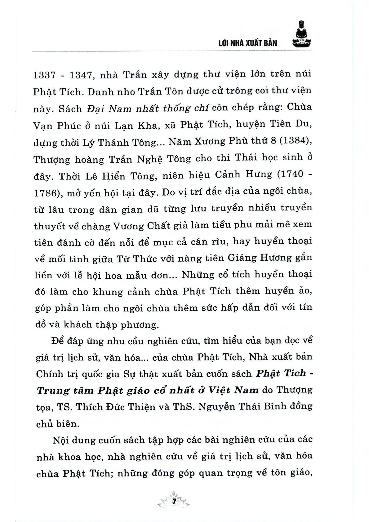 Phật Tích : Trung Tâm Phật Giáo Cổ Nhất Ở Việt Nam - Thượng tọa, TS. Thích Đức Thiện - ThS. Nguyễn Thái Bình (Đồng chủ biên) (CTQG)