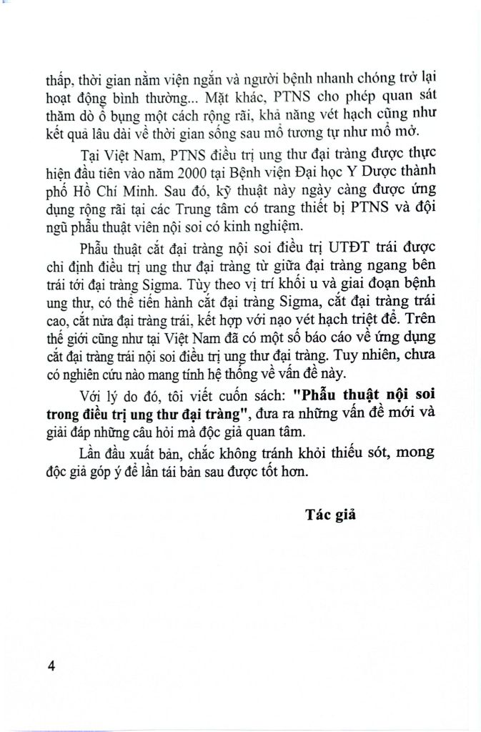 Năm 1990, phẫu thuật nội soi (PTNS) cắt đại tràng được thực hiện lần đầu tiên bởi Jacobs M (Mỹ). Lúc đầu, việc ứng dụng cắt đại tràng nội soi điều trị UTĐT chậm hơn so với các phẫu thuật nội soi khác (cắt túi mật, cắt ruột thừa...) bởi vì một số tác giả nghi ngờ vai trò của PTNS trong điều trị ung thư đại tràng. Các tác giả cho răng PTNS không đảm bảo được nguyên tắc triệt căn của phẫu thuật ung thư trong vét hạch, hơn thế PTNS có thể gây di căn tại lỗ đặt trocar... Sau này, những nghiên cứu so sánh giữa phẫu thuật cắt đại tràng nội soi với cắt đại tràng mở cho thấy PTNS điều trị ung thư đại tràng ngày càng tỏ rõ nhiều ưu việt so với cắt đại tràng mở: tính thẩm mỹ cao, ít đau sau mổ, tỷ lệ nhiễm khuẩn vết mổ và biến chứng sau mộ thấp, thời gian nằm viện ngắn và người bệnh nhanh chóng trở lại hoạt động bình thường... Mặt khác, PTNS cho phép quan sát thăm dò ổ bụng một cách rộng rãi, khả năng vét hạch cũng như kết quả lâu dài về thời gian sống sau mổ tương tự như mổ mở.
