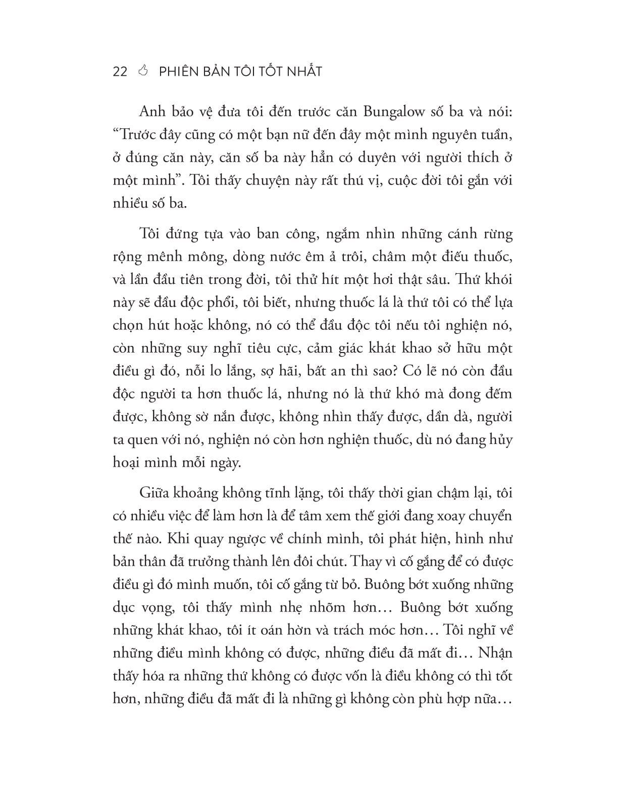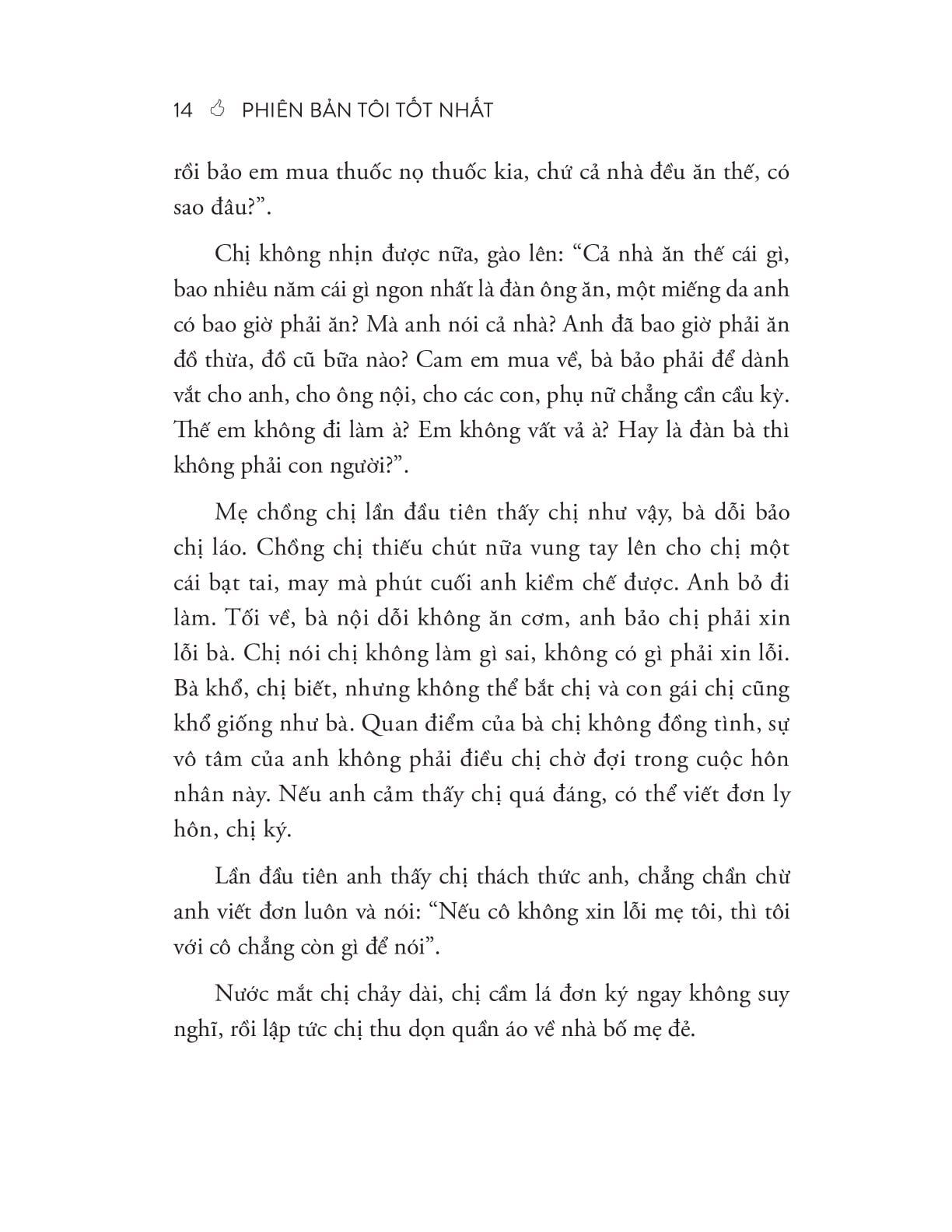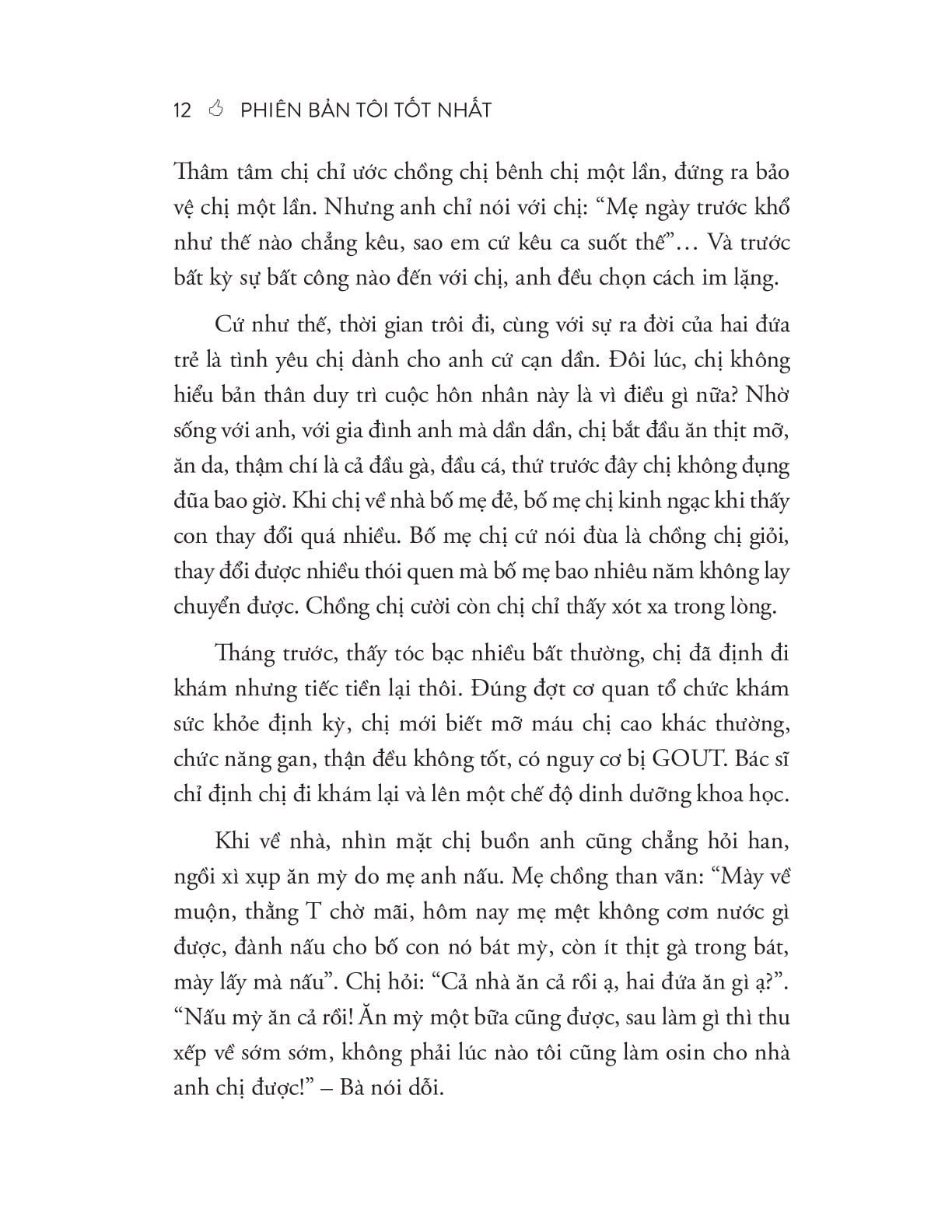 Phiên bản tôi tốt nhất, được tinh chỉnh từ cuốn Lợi thế đàn bà, đổi mới và bổ sung rất nhiều nội dung giá trị, dù vẫn bám vào những câu chuyện, bài học xoay quanh người phụ nữ, nhưng nó không hẳn chỉ dành riêng cho phụ nữ.