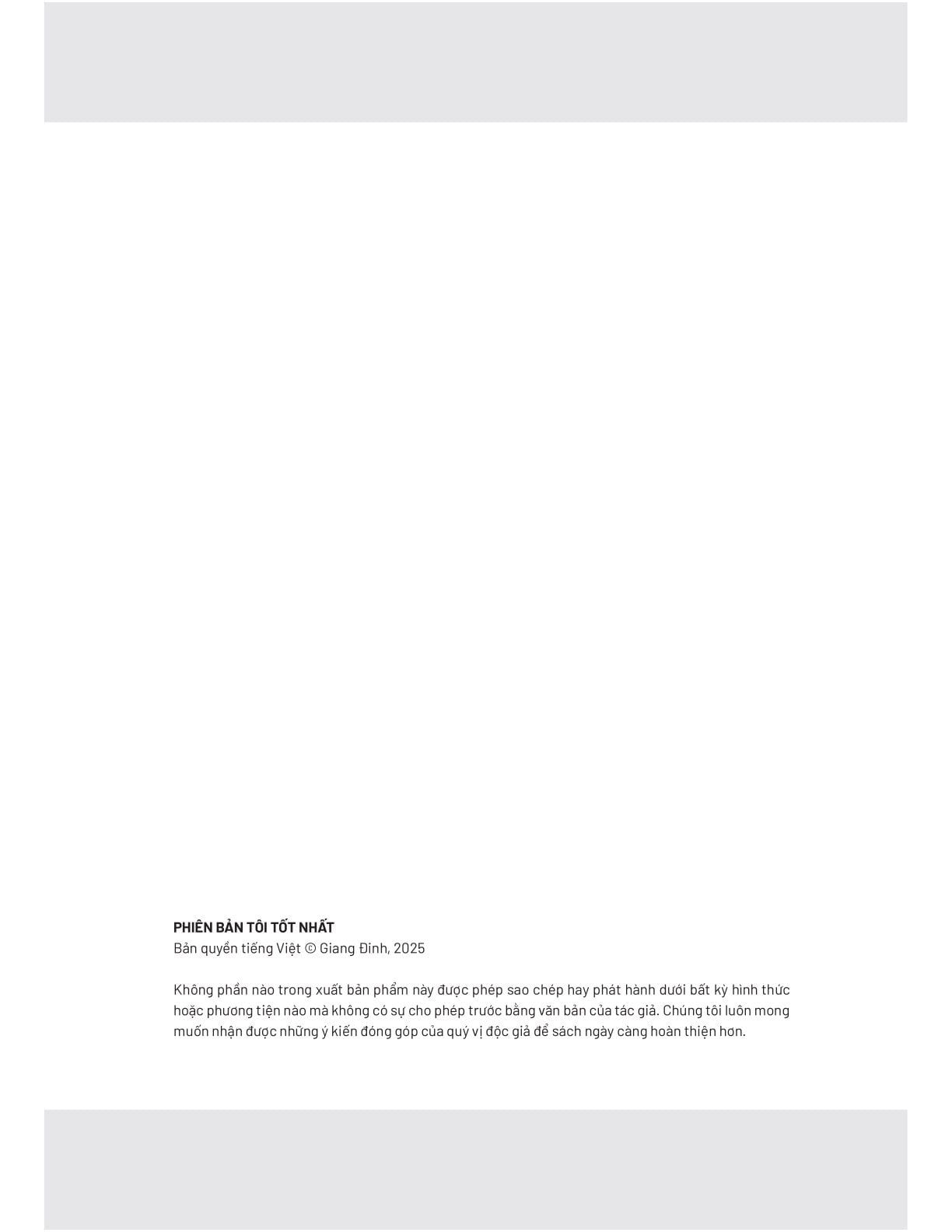 Phiên bản tôi tốt nhất dành cho bất kỳ ai muốn tìm thấy chính mình, hiểu rằng mình là người duy nhất chịu trách nhiệm cho mọi thứ đến với mình trong đời, nỗ lực để hoàn thiện mình mỗi ngày. Như mọi cuốn sách khác của Giang Đinh, Phiên bản tôi tốt nhất hướng đến thay đổi tư duy.