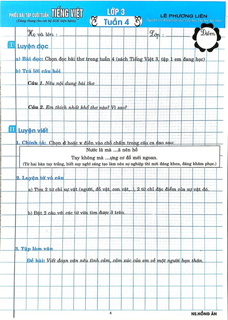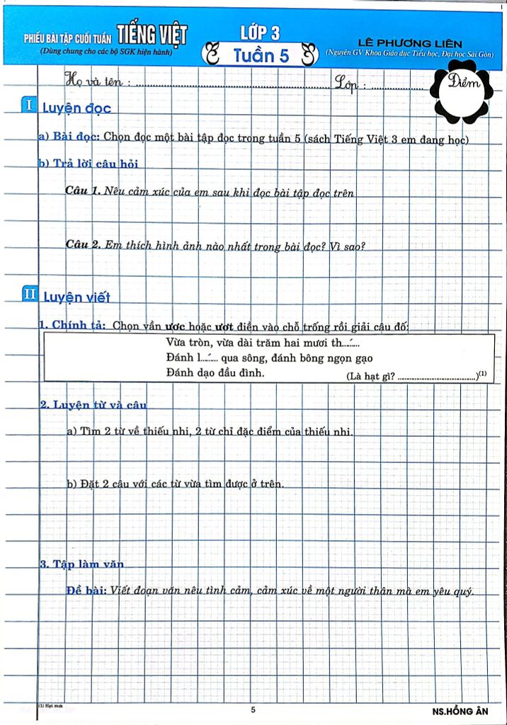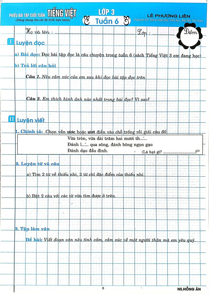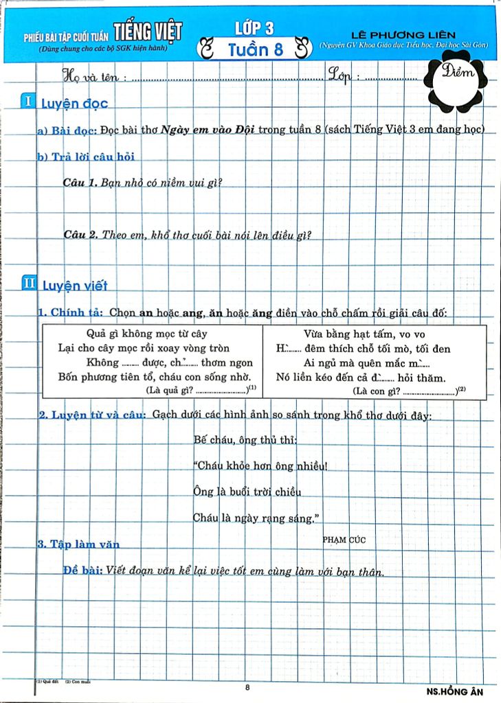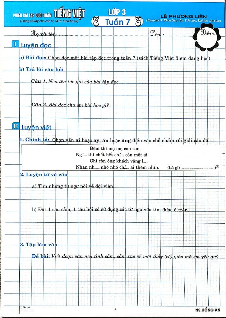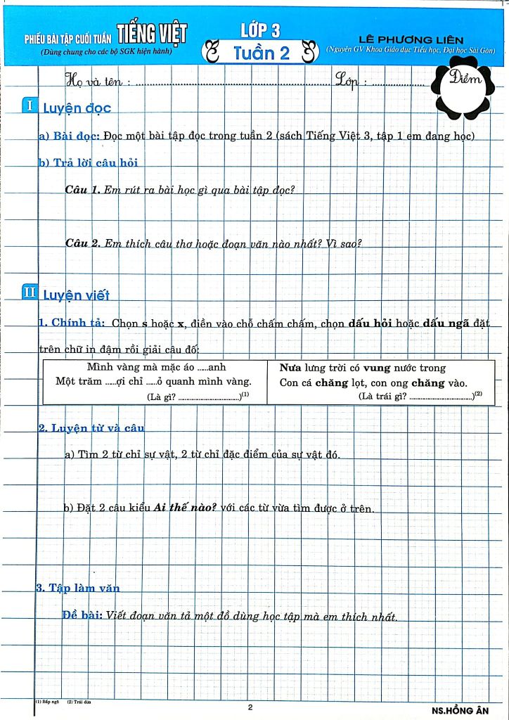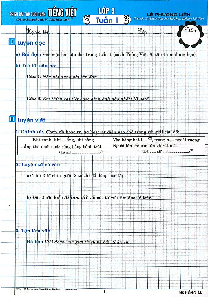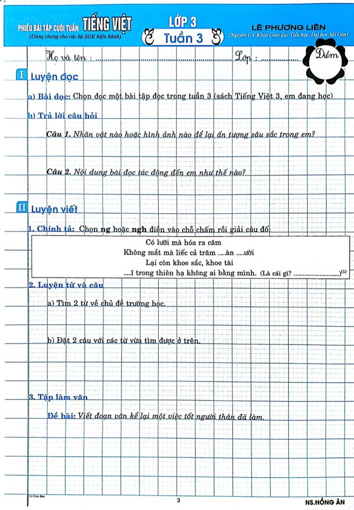 Giới Thiệu Phiếu Bài Tập Cuối Tuấn Môn Tiếng Việt Lớp 3 (Biên Soạn Theo Chương Trình Gdpt Mới) - Lê Phương Liên