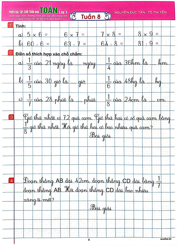 Giới Thiệu Phiếu Bài Tập Cuối Tuần Môn Toán Lớp 3 (Biên Soạn Theo Chương Trình Gdpt Mới) - Tô Thị Yến, Nguyễn Đức Tấn