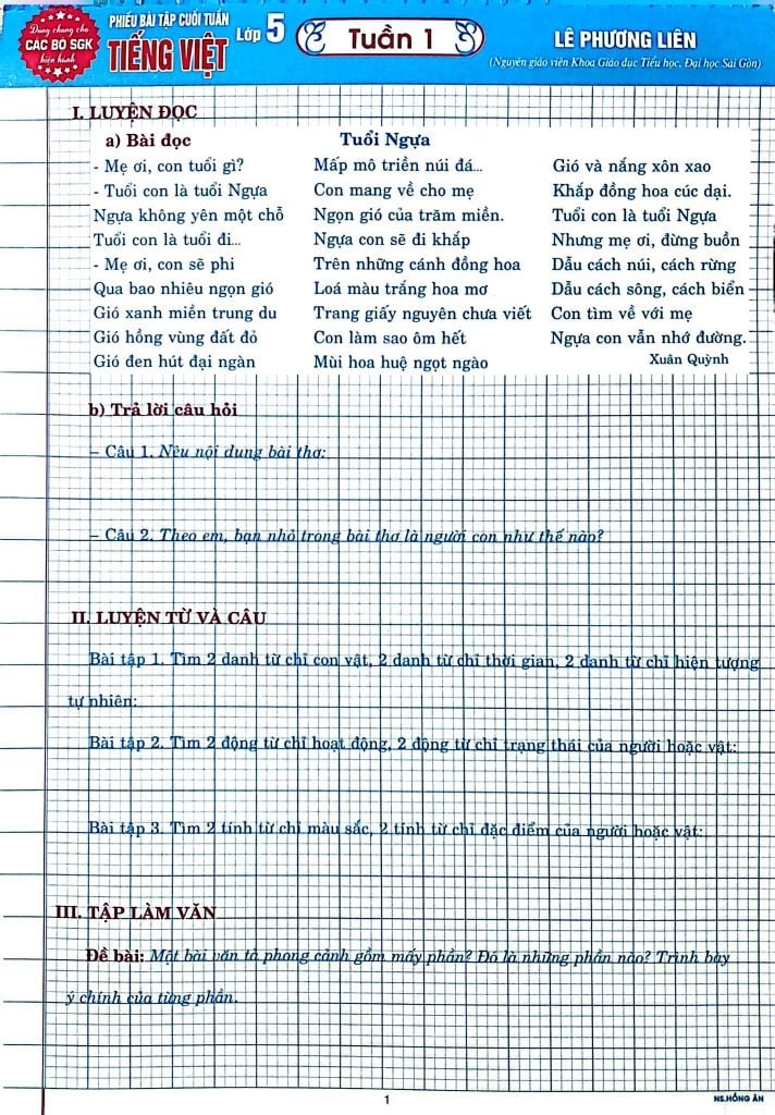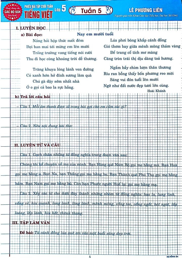 Giới Thiệu Phiếu Bài Tập Cuối Tuần Tiếng Việt 5 (Dùng Chung Cho Các Bộ Sgk Hiện Hành) - Lê Phương Liên