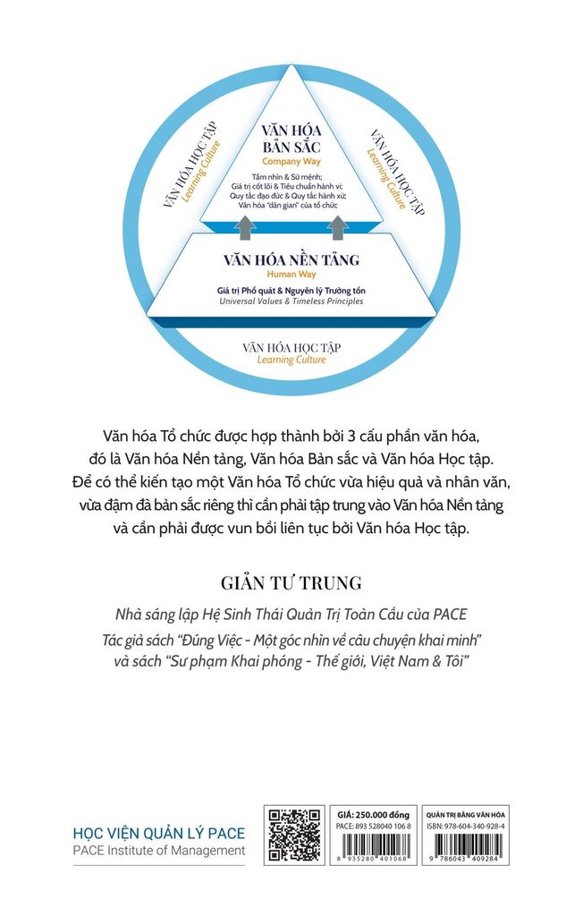 “QUẢN TRỊ BẰNG VĂN HÓA - Cách thức Kiến tạo & Tái tạo Văn hóa Tổ chức” là cuốn sách do Tiến sĩ Giản Tư Trung dày công đúc kết và hoàn thiện trong suốt nhiều năm, vừa tổng hợp kiến thức từ nhiều nguồn tư liệu, vừa chia sẻ những khái niệm, triết lý, mô hình và phương pháp từ góc nhìn rất riêng của tác giả về văn hóa và văn hóa doanh nghiệp, cũng như về cách thức xây dựng và chuyển đổi văn hóa tổ chức.