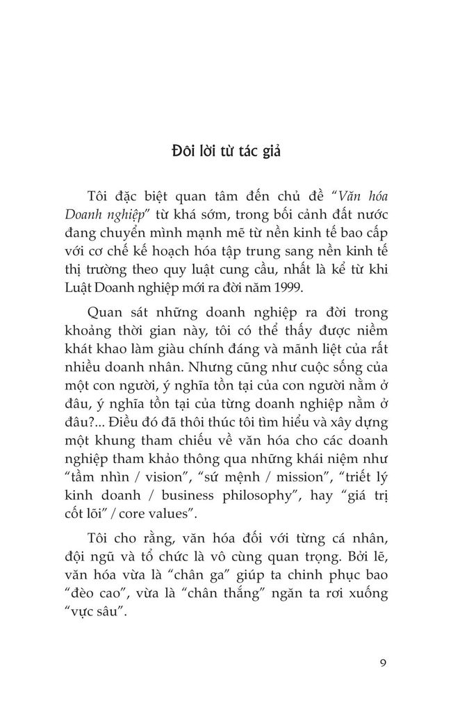 Bởi lẽ tác giả tin rằng, bên cạnh các phương cách quản trị truyền thống như Quản trị bằng Luật lệ (Mangement by Polices) hay Quản trị bằng Mục tiêu (Management by Objectives) thì Quản trị bằng Văn hóa (Management by Culture) chính là tương lai của quản trị và tương lai của lãnh đạo trong một thế giới đầy biến động và trong một thời đại mà con người ngày càng trở nên độc lập và tự do hơn.