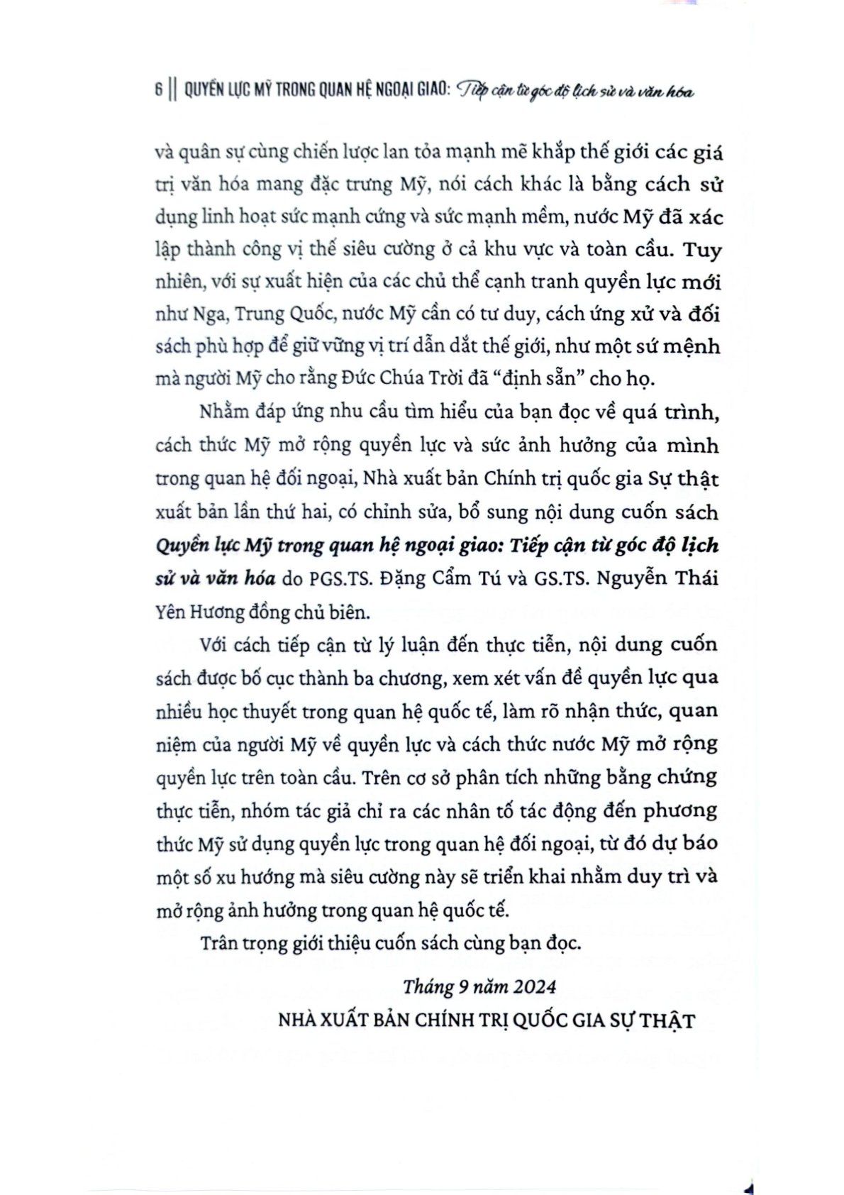 Quyền Lực Mỹ Trong Quan Hệ Ngoại Giao Tiếp Cận Từ Góc Độ Lịch Sử Và Văn Hóa (Sách Chuyên Khảo) - PGS.TS. Đặng Cẩm Tú (XB 2023)
