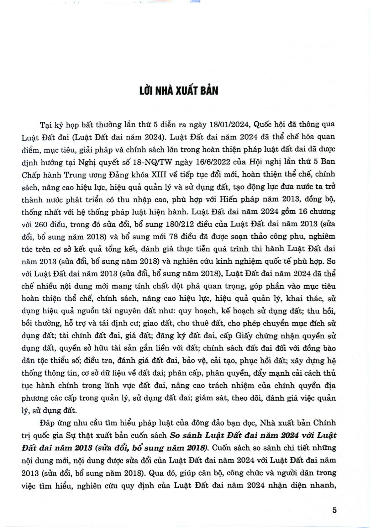So Sánh Luật Đất Đai Năm 2024 Với Luật Đất Đai Năm 2013 (Sửa Đổi, Bổ Sung Năm 2018) - TS.Nguyễn Thị Thế - Ngô Tuấn Hùng (XB 2024)