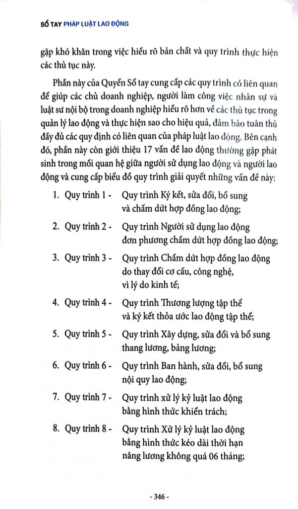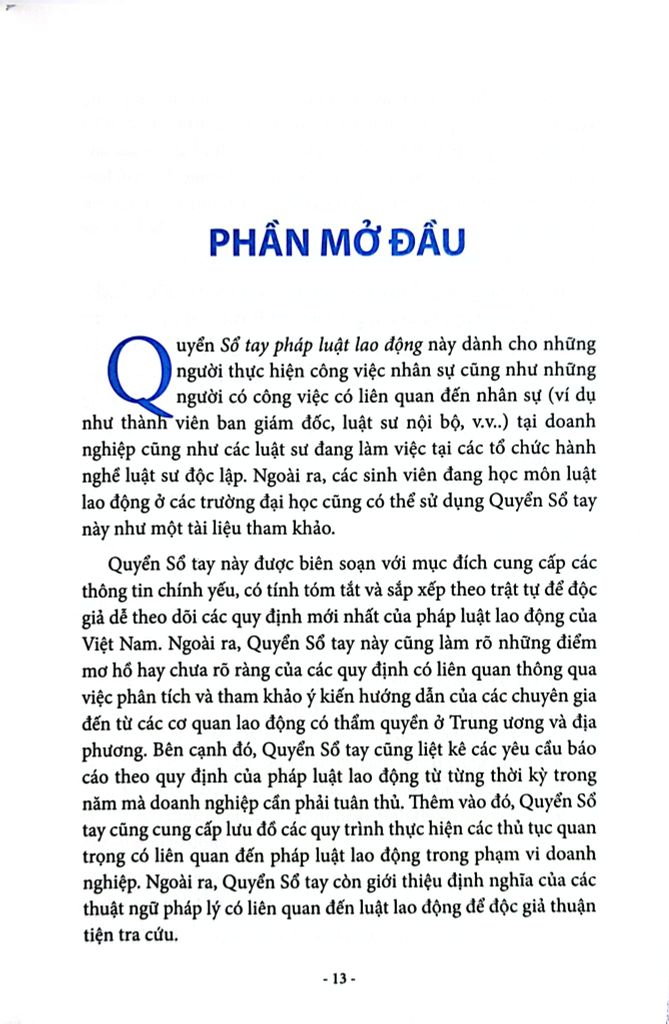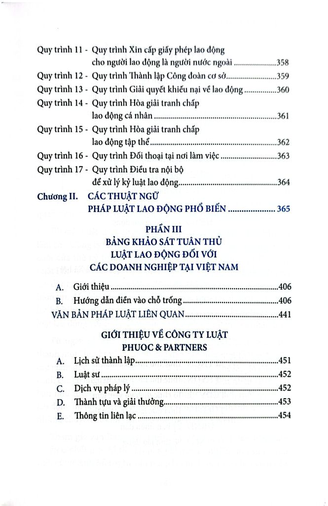 Cuốn sách gồm 3 Phần nội dung chính: Phần 1 - Pháp Luật lao động; Phần 2 - Các Phụ lục; Phần 3: Bảng khảo sát tuân thủ về pháp luật lao động đối với các doanh nghiệp tại Việt Nam.