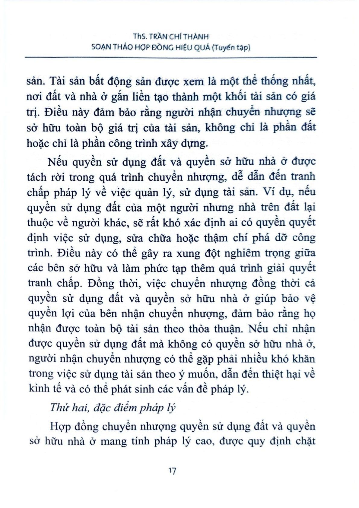 Soạn Thảo Hợp Đồng Hiệu Quả (Tuyển Tập) Hợp Đồng Chuyển Nhượng Quyền Sử Dụng Đất, Quyền Sở Hữu Nhà Ở Góc Nhìn Bên Nhận Chuyển Nhượng - ThS. Trần Chí Thành