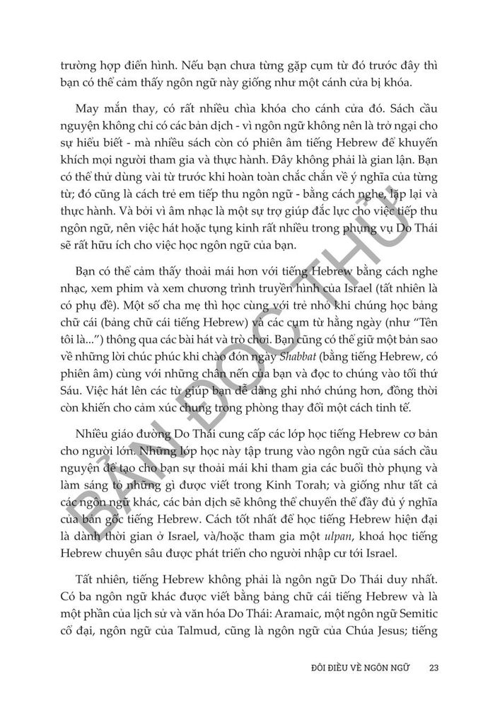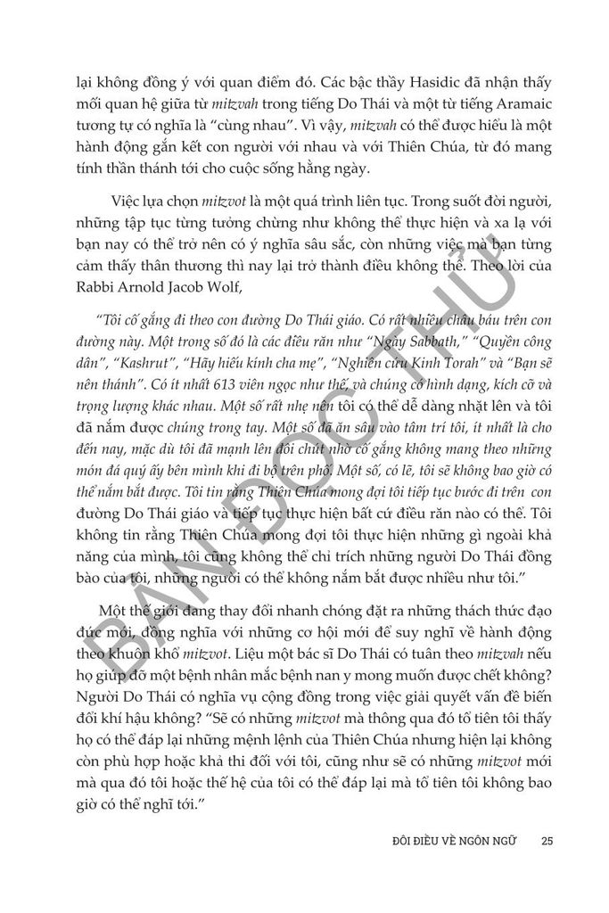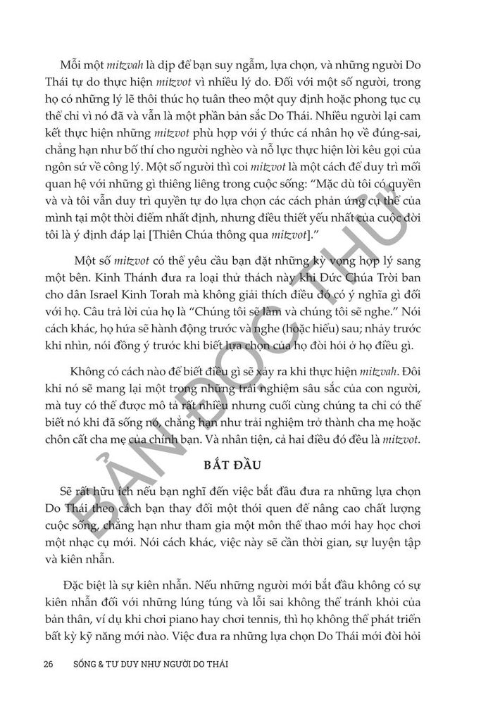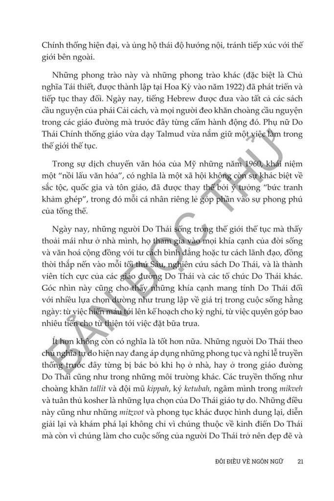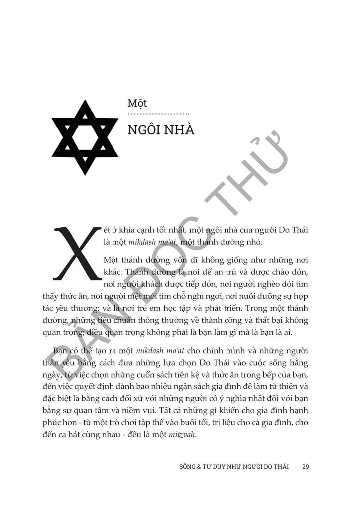 Sống và tư duy như người Do Thái của Anita Diamant & Howard Hooper đóng vai trò như một hướng dẫn toàn diện để tìm hiểu về sự phức tạp đẹp đẽ của đạo Do Thái trong thế giới hiện đại. Cuốn sách này đem đến những kiến thức phong phú về truyền thống, phong tục và giá trị Do Thái trong thế kỷ 21, cung cấp cho độc giả cách tiếp cận thực tế để tôn vinh và hiểu biết sâu sắc về việc thực hành văn hóa và tâm linh của người Do Thái. Từ việc treo mezuzah đến cử hành Lễ Vượt Qua, cuốn sách này đề cập đến nhiều chủ đề phục vụ cho cả những người mới theo đạo Do Thái và những người thực hành lâu năm đang tìm cách gắn kết sâu sắc hơn với đức tin của họ. Dù bạn quan tâm đến các khía cạnh văn hóa hay nền tảng tinh thần sâu sắc của cuộc sống Do Thái, Diamant và Cooper mang đến một khám phá dễ tiếp cận, sâu sắc và tôn trọng nhằm thu hẹp khoảng cách giữa thực hành truyền thống và cuộc sống đương đại, khiến cuốn sách trở thành nguồn tài liệu không thể thiếu cho bất kỳ ai muốn tìm hiểu và tiếp nhận lối sống của người Do Thái.