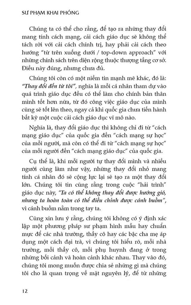 Đây là cuốn sách do Tác giả, Nhà hoạt động giáo dục, Tiến sĩ Giản Tư Trung dày công thực hiện trong suốt nhiều năm, với sự trợ giúp của các cộng sự ở Viện Giáo Dục IRED. Cuốn sách gần đây nhất của Ông là “Đúng Việc - Một góc nhìn về câu chuyện khai minh” đã được tái bản đến lần thứ 11. Với tác phẩm tiếp theo này, Ông chuyên tâm đào sâu về giáo dục và sư phạm để tiếp tục sứ mệnh góp phần thúc đẩy sự hình thành và phát triển của Giáo dục Khai phóng tại Việt Nam của Viện IRED.