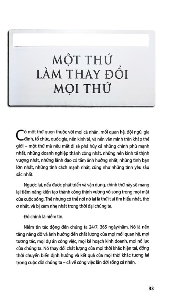 Sách “Sức Mạnh Của Niềm Tin - The Speed of Trust” là chìa khóa, phương pháp xây dựng thương hiệu uy tín, đề cao vai trò của niềm tin cá nhân trong việc tạo dựng niềm tin cho tổ chức từ việc lấy mỗi cá nhân có tầm quan trọng trong việc xây dựng thương hiệu chung,từ đó dẫn đến thương hiệu đáng tin