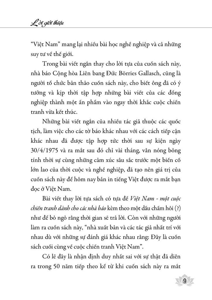 Börries Gallasch là nhà báo, biên tập viên người Đức, biên soạn và tập hợp các bài viết từ nhiều phóng viên Đức từng tác nghiệp tại miền Nam Việt Nam giai đoạn 1975.