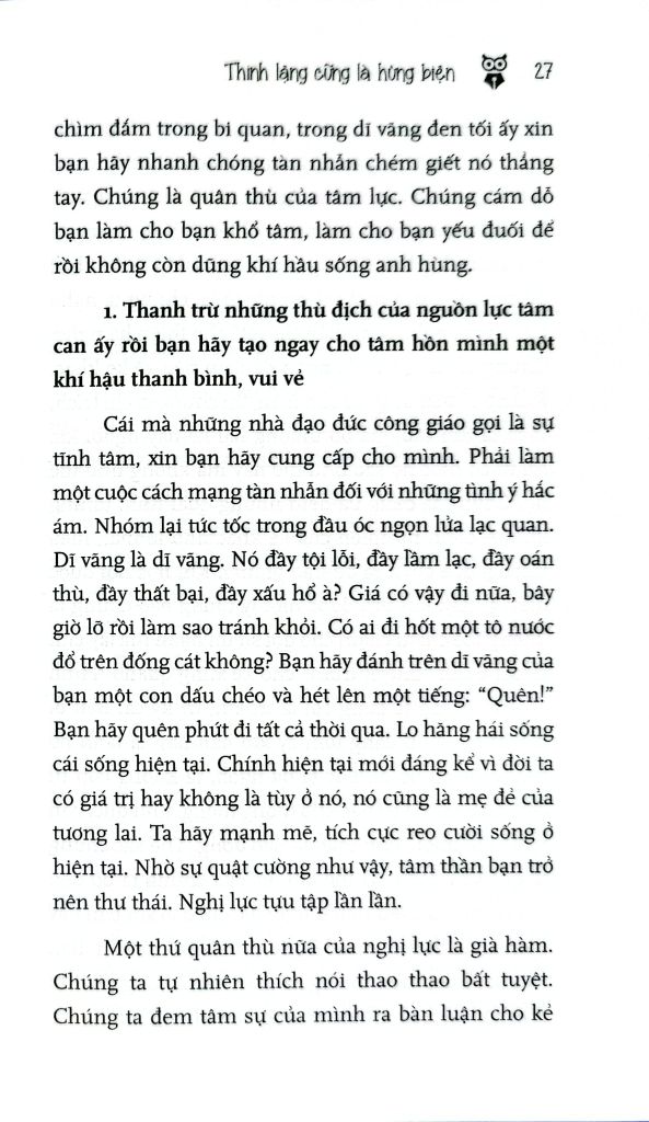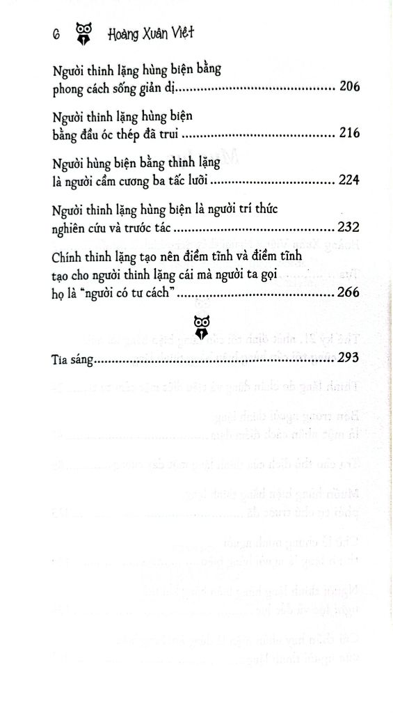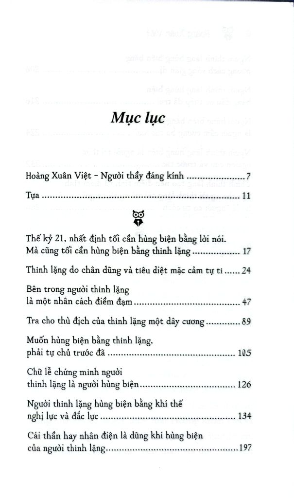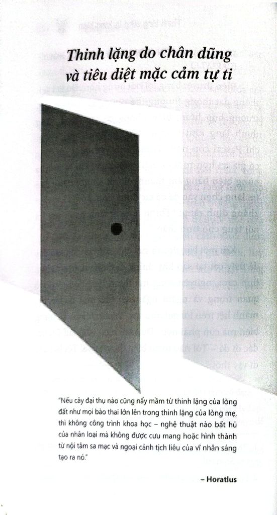 Tác giả Hoàng Xuân Việt chỉ ra nhiều phương pháp cụ thể để người đọc theo đó mà làm theo, rèn đức thinh lặng để hoàn thiện bản thân: Muốn hùng biện thinh lặng phải luyện tự chủ trước hay chính thinh lặng tạo nên điềm tĩnh và điềm tĩnh tạo cho người thinh lặng cái mà người ta gọi họ là “người có tư cách”.