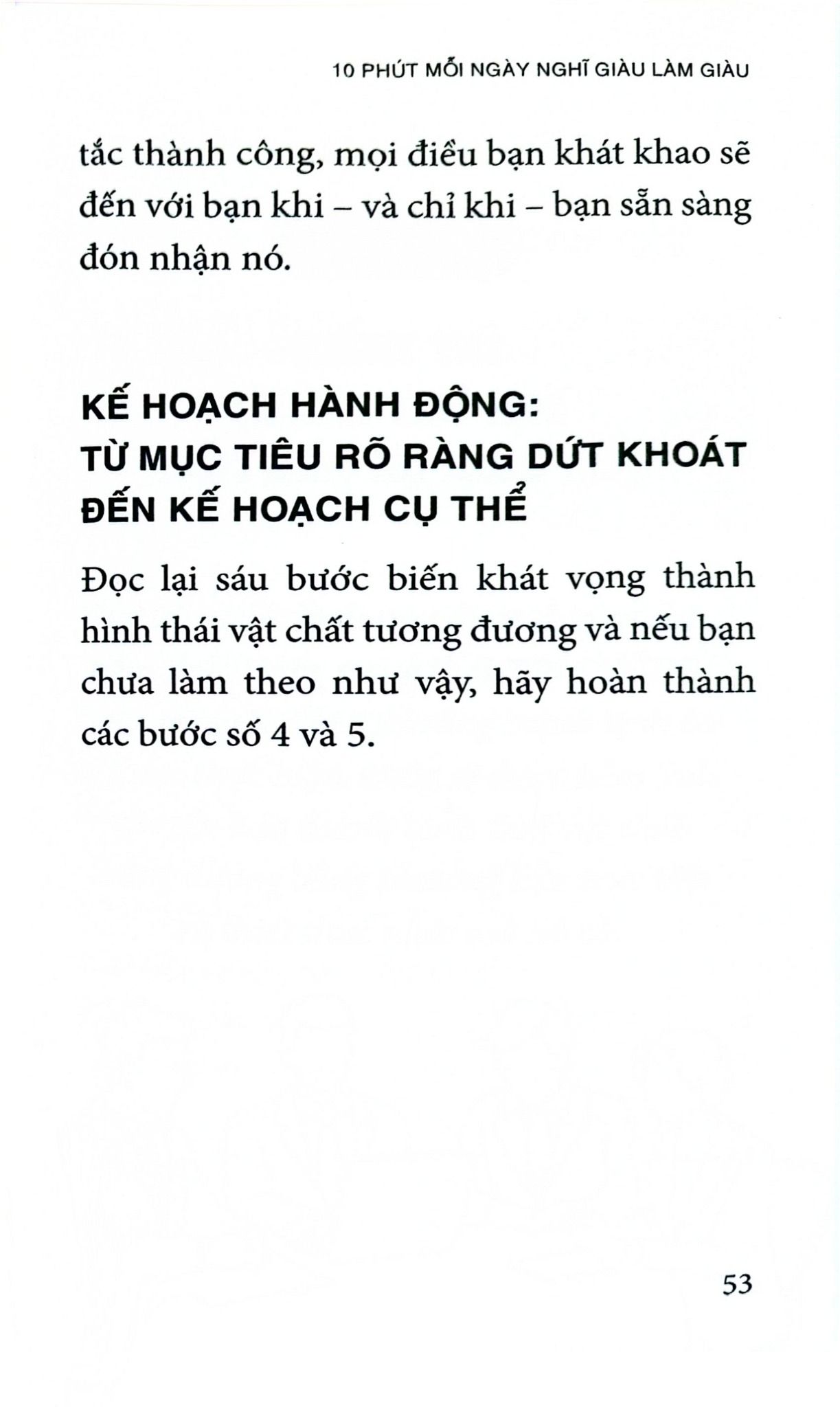 Như Hill đã nói, “Có tiềm năng to lớn đến vậy để đạt được thành tựu cũng chẳng có ý nghĩa trừ khi bạn làm điều gì đó để biến tiềm năng đó thành hiện thực.” Bây giờ là lúc bạn bắt đầu hành động nghiêm túc hướng tới mục tiêu chính của mình với sự trợ giúp từ kế hoạch đã được chứng minh là sẽ đem lại thành công của Hill… chỉ với vài phút mỗi ngày!