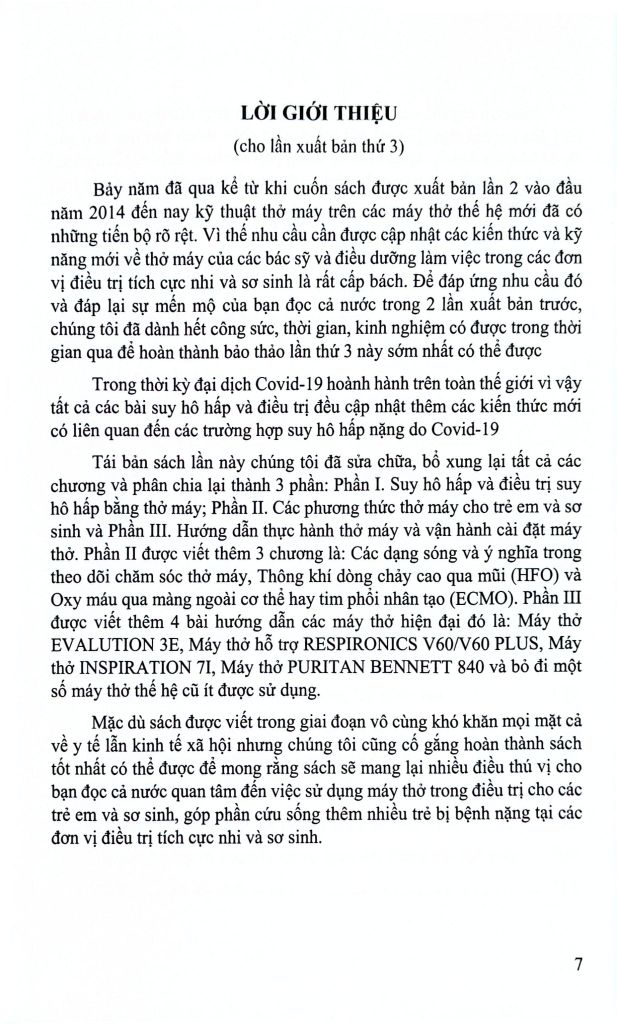 Cuốn sách Thông khí nhân tạo cho trẻ em và sơ sinh là nhu cầu không thế thiều được cho các bác sỹ và điều dưỡng làm việc trong các đơn vị điều trị tích cực nhi và sơ sinh.