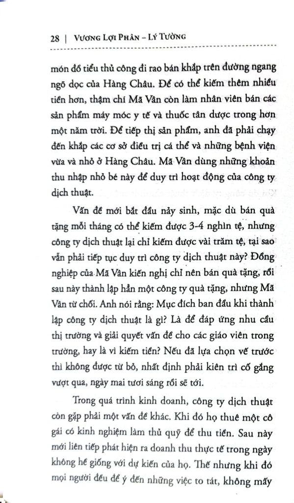 Trong suốt quá trình đồng hành cùng Alibaba và Mã Vân từ những ngày đầu lập nghiệp, tác giả Vương Lợi Phân – Lý Tường đã đã chiêm nghiệm và đúc rút ra được rằng: “Sự kiệt xuất của Mã Vân là bởi vì ông đã nhìn thấy và tin tưởng tương lai, là bởi sau khi đã tin tưởng, ông còn dám dấn thân khám phá”.