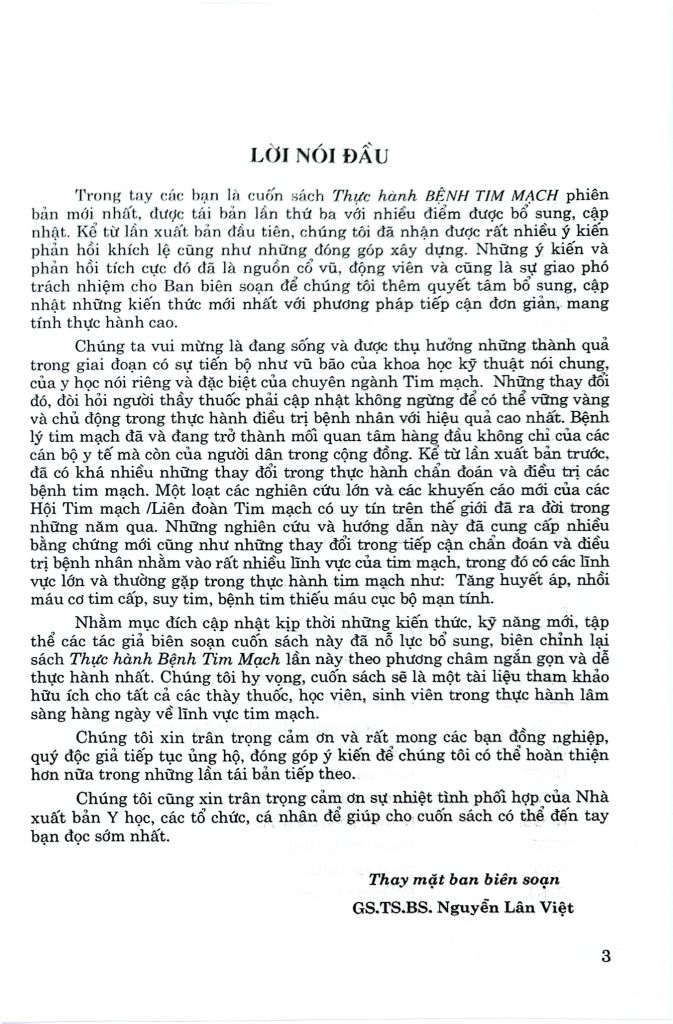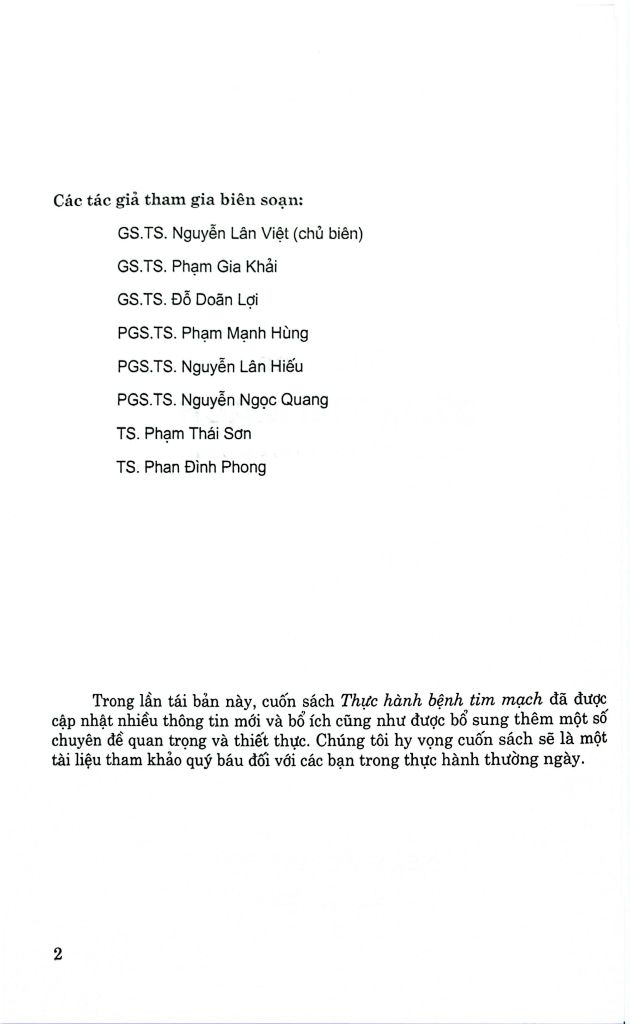Cuốn sách Thực Hành Bệnh Tim Mạch, phiên bản mới nhất, đã được tái bản lần thứ ba với nhiều bổ sung và cập nhật quan trọng. Kể từ lần đầu tiên xuất bản, chúng tôi đã nhận được nhiều phản hồi tích cực và góp ý xây dựng. Những ý kiến này là động lực lớn, giúp chúng tôi tiếp tục hoàn thiện và cung cấp những kiến thức mới nhất, với phương pháp tiếp cận đơn giản và thực tiễn cao.