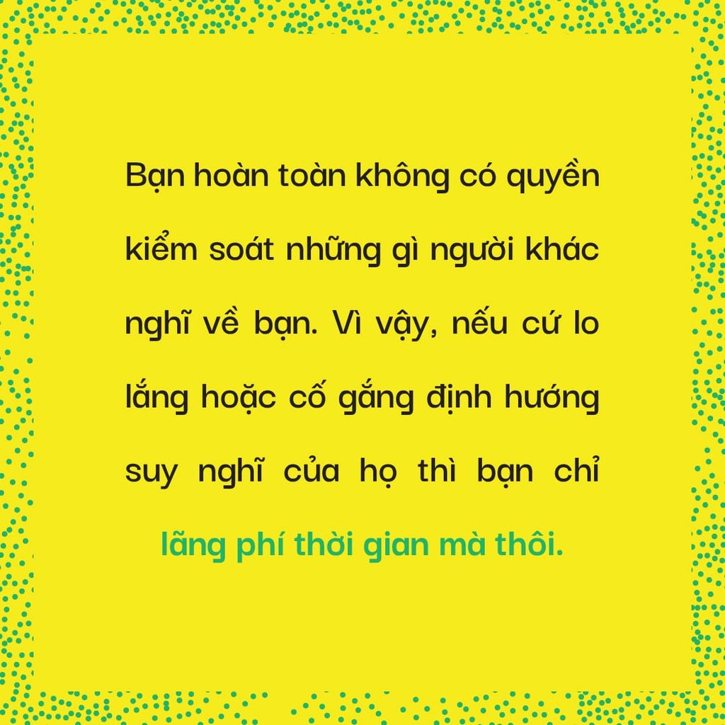 - "Mặc Kệ Họ": Hãy để người khác tự do sống, tự do cảm nhận mà không bị bạn phán xét hay chi phối. Đây là cách bạn giải phóng mình khỏi nỗi sợ bị đánh giá, không được yêu thích. Khi bạn ngừng cố gắng kiểm soát những điều không thể, bạn sẽ giải phóng năng lượng để tập trung vào CHÍNH BẠN.