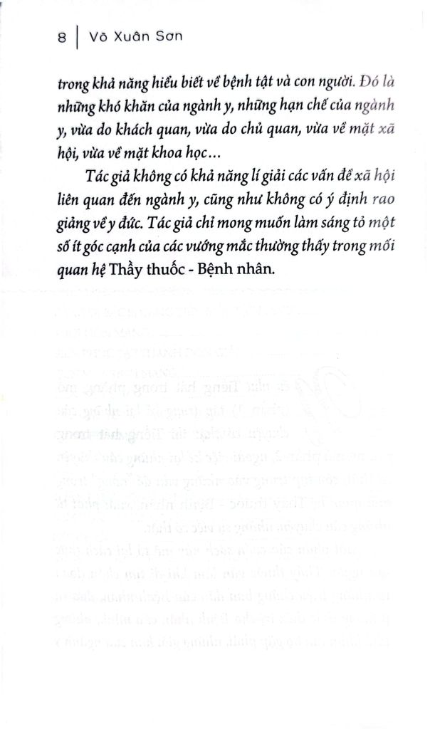 Tác giả không có khả năng lý giải các vấn đề xã hội liên quan đến ngành y, cũng như không có ý định rao giảng về y đức. Tác giả chỉ mong muốn làm sáng tỏ một số ít góc cạnh của các vướng mắc thường thấy trong mối quan hệ Thầy thuốc - Bệnh nhân.
