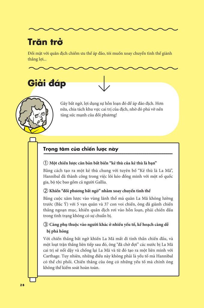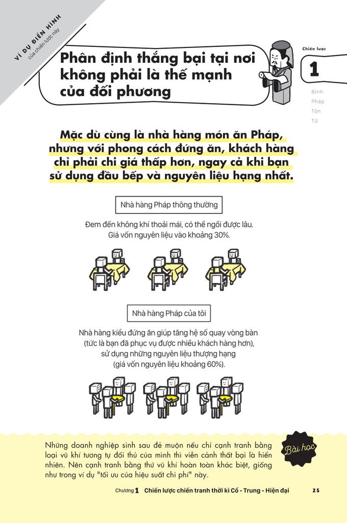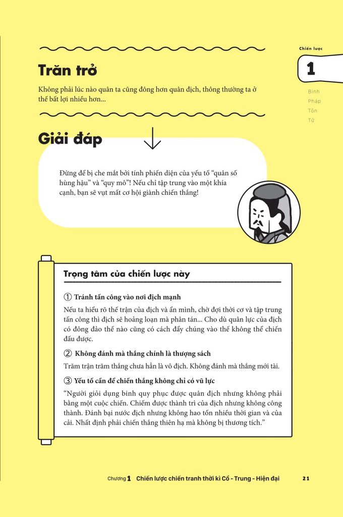 Lĩnh hội những tri thức cổ đại nhất định sẽ giúp bạn thấu hiểu sâu sắc hơn khi tiếp thu chiến lược mới nhất hiện nay. “Chiến lược = tiêu chí cần đạt được” là tầm nhìn thông suốt tương lai, nhờ đó ta sẽ học được thói quen “lên kế hoạch cho tương lai”. Vậy nên, khi bạn đối diện với hoàn cảnh khó khăn trong cuộc sống, “tư duy” chiến lược sẽ trở thành chiếc phao cứu cánh cho bạn. Bạn chắc chắn sẽ không còn quẩn quanh trong nỗi bất an vô định về tương lai mà có thể sống một cách “có chiến lược” theo đúng nghĩa đen của nó.