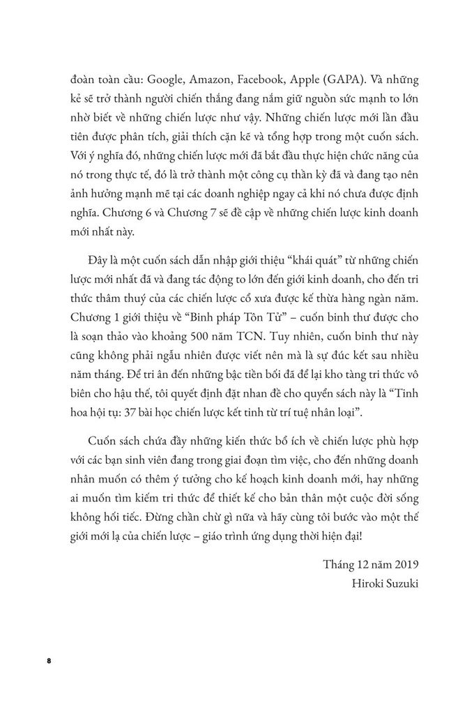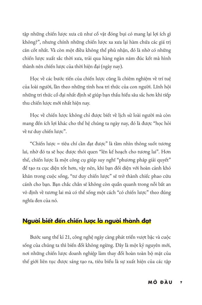 Học về các bước tiến của chiến lược cũng là chiêm nghiệm về trí tuệ của loài người, lần theo những tinh hoa tri thức của con người. Lĩnh hội những tri thức cổ đại nhất định sẽ giúp bạn thấu hiểu sâu sắc hơn khi tiếp thu chiến lược mới nhất hiện nay. Những chiến lược là giá trị tinh hoa, di sản mà những thế hệ trước đã để lại cho chúng ta. Đó là điều có thể áp dụng được bất chấp thời gian và không gian. Đừng chần chừ, hãy cùng với Bizbooks bước vào một thế giới mới lạ của chiến lược - giáo trình ứng dụng thời hiện đại ngay hôm nay.