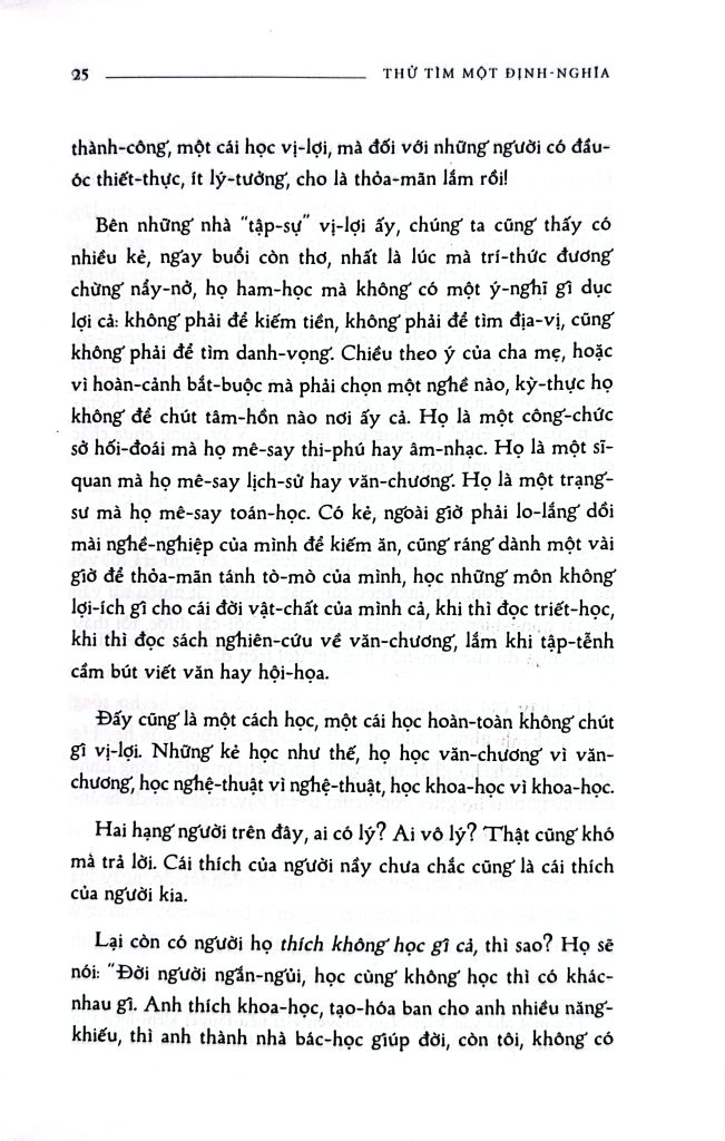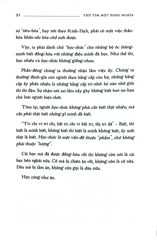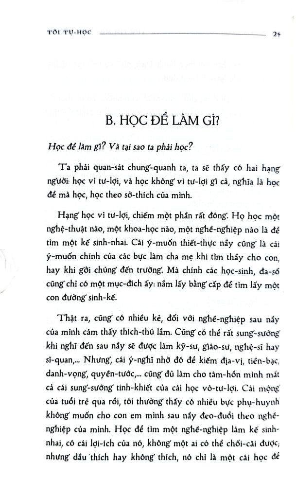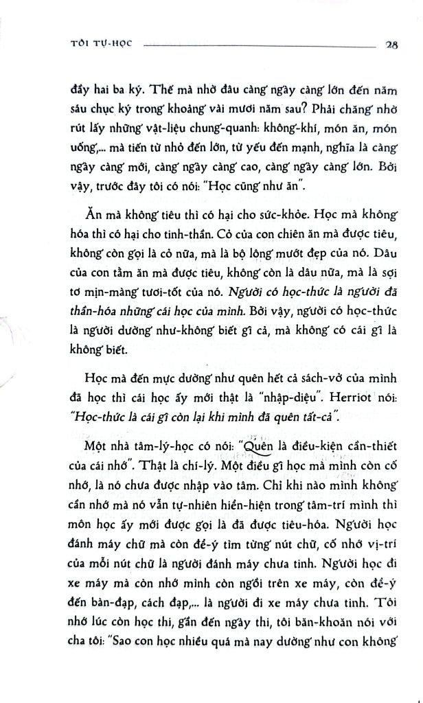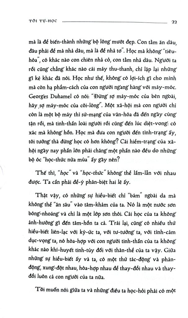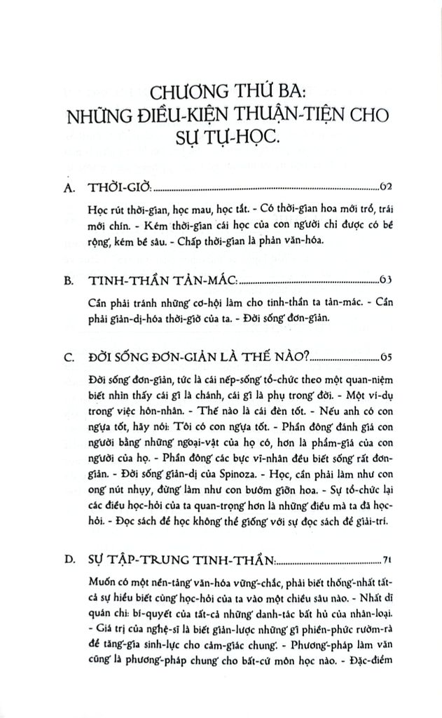 Cuốn sách này tuy đã được xuất bản từ rất lâu nhưng giá trị của sách vẫn còn nguyên vẹn. Những tư tưởng, chủ đề của sách vẫn phù hợp và có thể áp dụng trong đời sống hiện nay. Thiết nghĩ, cuốn sách này rất cần cho mọi đối tượng bạn đọc vì không có giới hạn nào cho việc truy tầm kiến thức, việc học là sự nghiệp lâu dài của mỗi con người. Đặc biệt, cuốn sách là một tài liệu quý để các bạn học sinh – sinh viên tham khảo, tổ chức lại việc học của mình một cách hợp lý và khoa học. Các bậc phụ huynh cũng cần tham khảo sách này để định hướng và tư vấn cho con em mình trong quá trình học tập.