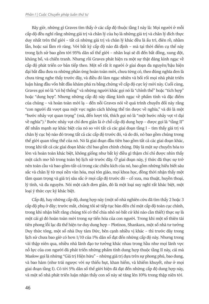 Trên nền tảng Lý thuyết Dung hợp (Integral Theory), Wilber xây dựng một “tấm bản đồ phát triển toàn diện” bao quát mọi khía cạnh từ thể chất, tâm lý đến tâm linh con người. Ông dẫn dắt bạn đọc qua từng giai đoạn tiến hóa của ý thức: từ thần thoại, tín ngưỡng sơ khai đến những tầng mức tỉnh thức, bao dung, hợp nhất sâu sắc. Đồng thời, ông chỉ ra cách nhận diện và vượt qua những “căn bệnh” tâm lý và tinh thần có thể cản trở sự trưởng thành của mỗi cá nhân hoặc cộng đồng.
