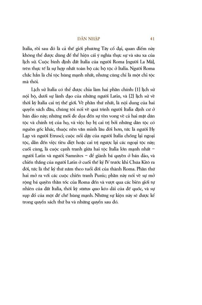 Bản tiếng Việt Lịch sử La Mã gồm 5 tập, được xuất bản lần lượt. Tập 1 được xuất bản trong năm nay, nội dung gồm: