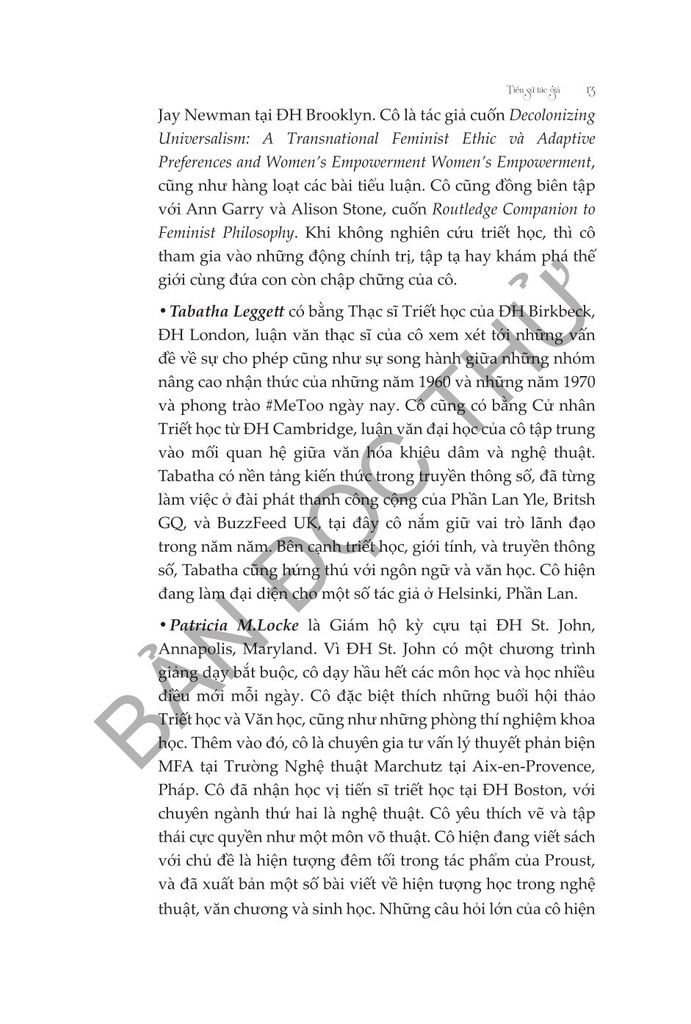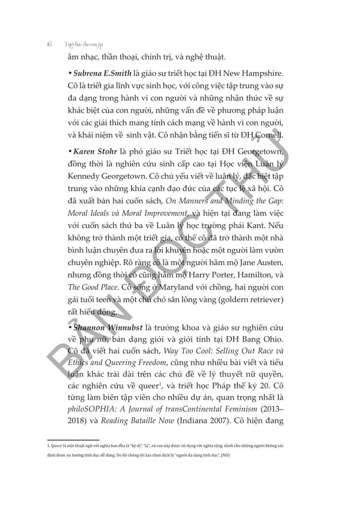 “Triết học cho con gái” là một dẫn nhập nghiêm túc nhưng dễ tiếp cận để chiêm nghiệm triết học, được biên soạn để truyền cảm hứng cho thế hệ triết gia mới, thiết lập sự bình đẳng trong triết học.