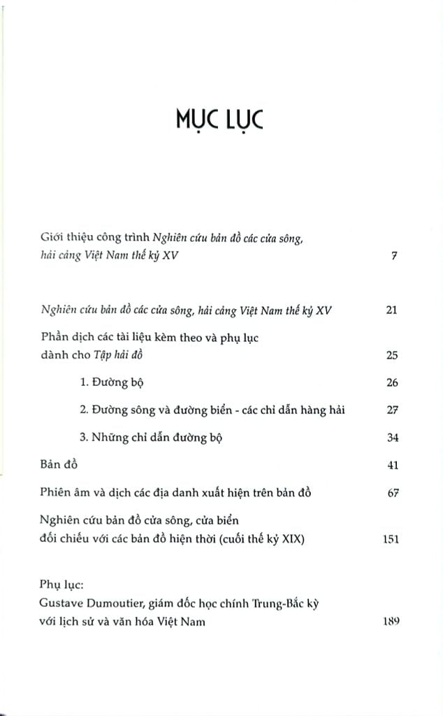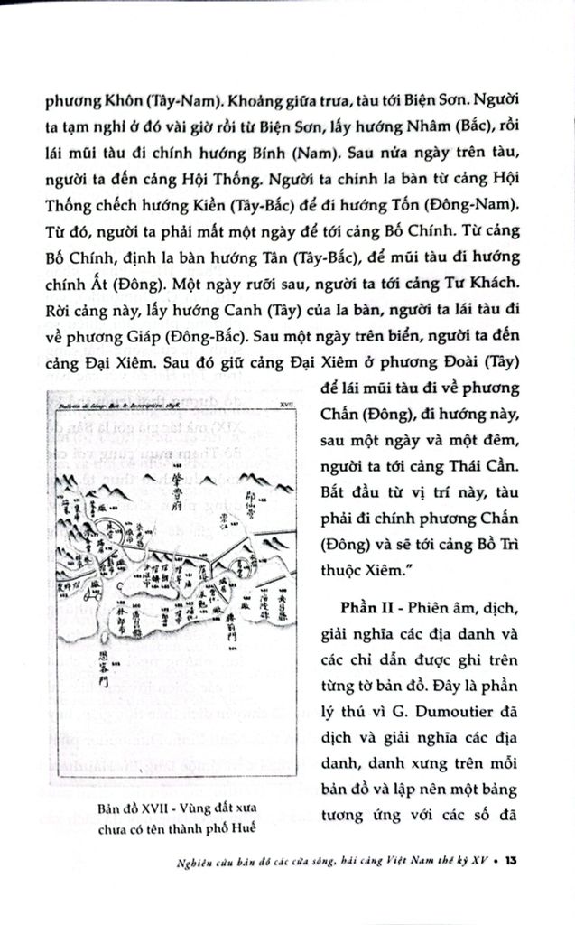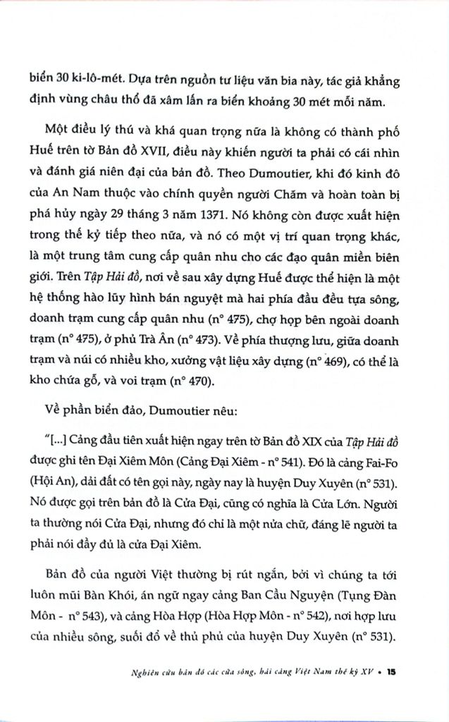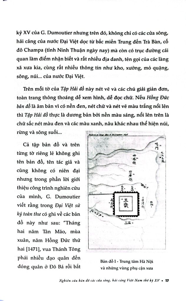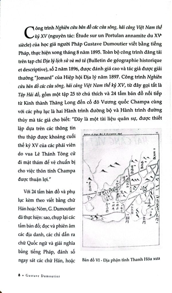 Công trình Nghiên cứu bản đồ các cửa sông, hải cảng Việt Nam thế kỷ XV (nguyên tác: Étude sur un Portulan annamite du XVe siècle) của học giả người Pháp Gustave Dumoutier viết bằng tiếng Pháp, thực hiện xong tháng 8 năm 1895. Toàn bộ công trình đăng tải trên tạp chí Địa lý lịch sử và mô tả (Bulletin de géographie historique et descriptive), số 2 năm 1896, được đánh giá cao và tác giả được giải thưởng “Jomard” của Hiệp hội Địa lý năm 1897.