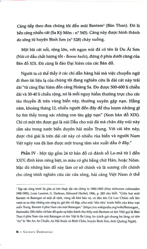 Phần IV - Một tập gồm 24 tờ bản đồ có đánh số La-mã từ I đến XXIV, đính kèm riêng biệt, có ghi bằng chữ Hán, hoặc Nôm. Mặc dù những bản đồ này làm cơ sở chính và là xương cốt chính cho công trình nghiên cứu các cửa sông, hải cảng Việt Nam ở thế kỷ XV của G. Dumoutier nhưng trên đó, không chỉ có các cửa sông, hải cảng của nước Đại Việt dọc từ bắc miền Trung đến Trà Bàn, cố đô Champa (tỉnh Ninh Thuận ngày nay) mà còn có trục đường cái quan làm điểm nhận biết và rất nhiều địa danh, tên gọi của các làng xã xưa kia, cùng rất nhiều thông tin như kho, xưởng, mỏ quặng, sông, nú của nước Đại Việt.