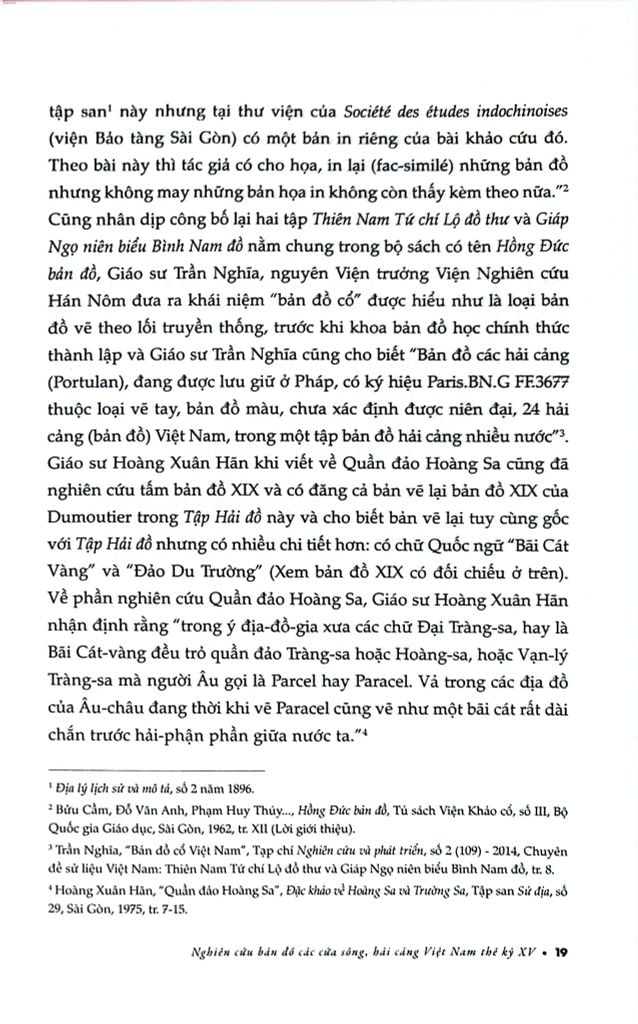 Công trình Nghiên cứu bản đồ các cửa sông, hải cảng Việt Nam thế kỷ XV, sau đây gọi tắt là Tập Hải đồ, gồm một tập 25 tờ chú thích và 24 tấm bản đồ nối tiếp từ Kinh thành Thăng Long đến cố đô Vương quốc Champa cùng với các phụ lục là hai Hành trình đường bộ và Hành trình đường thủy mà tác giả cho biết: “Đây là một tài liệu quân sự, được thiết lập dựa trên các thông tin thu thập được khoảng cuối thế kỷ XV của các phái viên do vua Lê Thánh Tông cử đi mật thám để vẽ chuẩn bị cho việc thôn tính Champa được thuận lợi.”