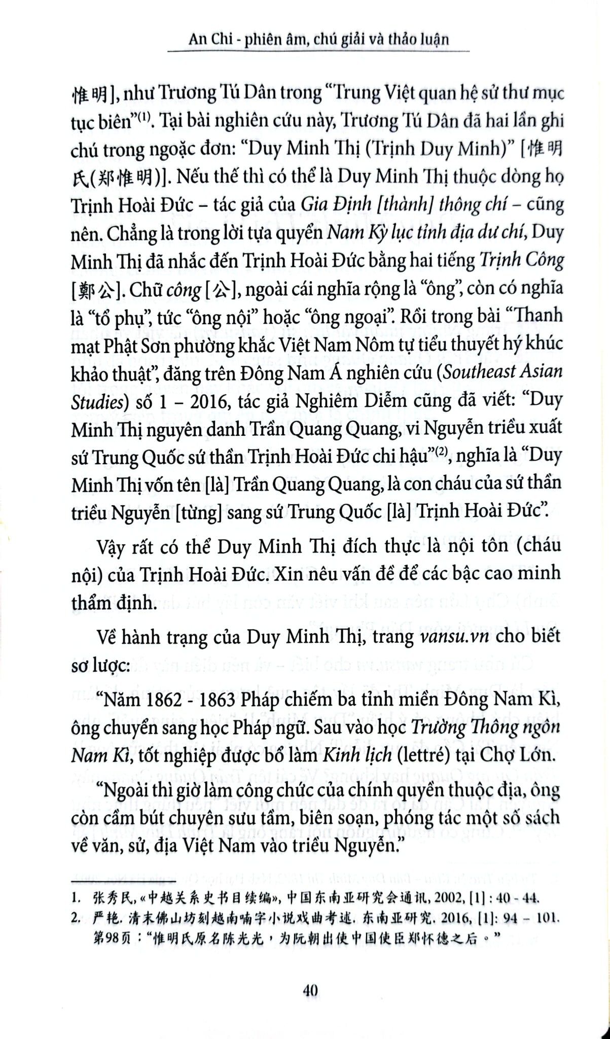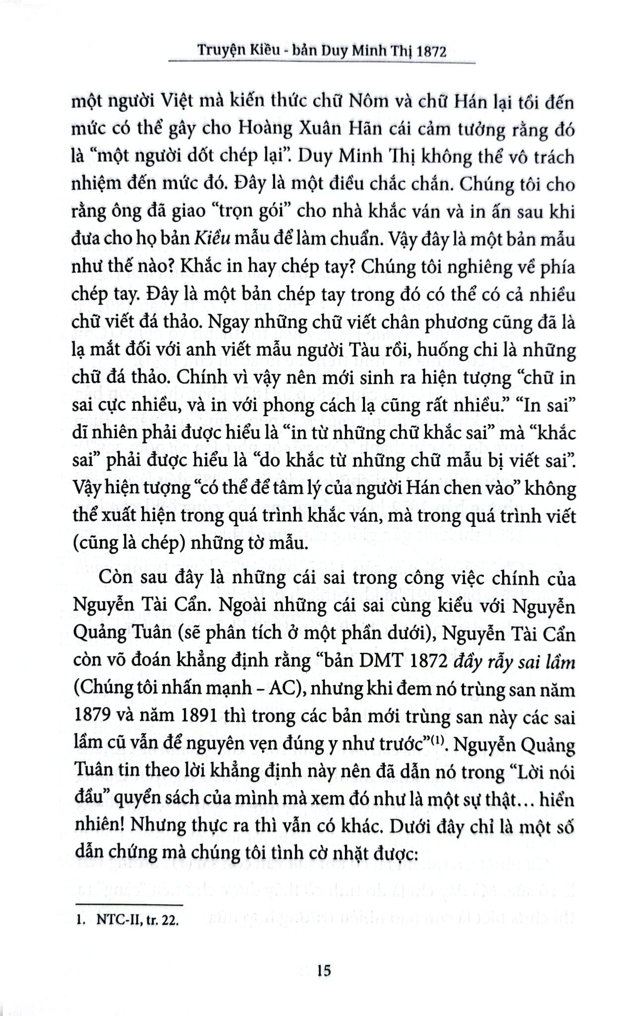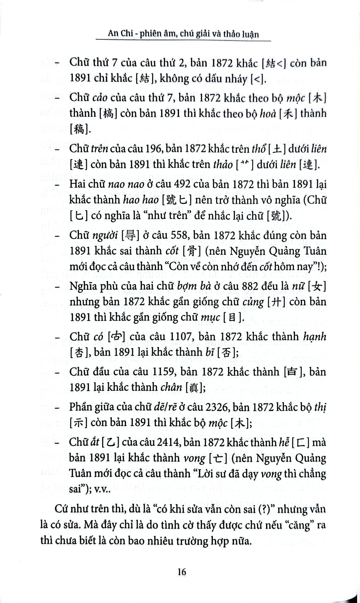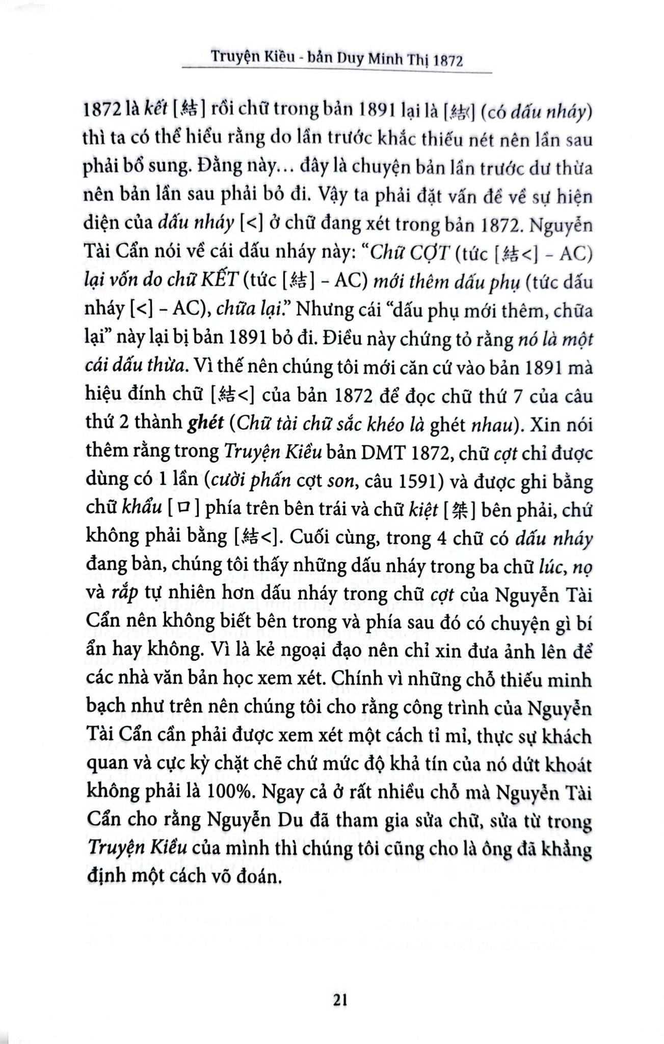 Điều thú vị thứ ba chính là tinh thần cẩn trọng và cởi mở của tác giả trong nghiên cứu học thuật. Để có thể đưa ra những kiến giải mới, phản biện một cách thuyết phục trước ý kiến của các bậc “cây đa cây đề” trong ngành văn bản học và Kiều học, học giả An Chi đã tham khảo nhiều nguồn tài liệu khác nhau. Hai năm trước, ông đã giới thiệu đến bạn đọc cuốn Câu chữ Truyện Kiều – thành quả của quãng thời gian dài nghiên cứu về tác phẩm này. Nay trong Truyện Kiều – bản Duy Minh Thị 1872, trên cơ sở tiếp tục tìm tòi, lắng nghe ý kiến của bạn đọc từ các diễn đàn, ông đã có những điều chỉnh trong cách phiên âm và giải nghĩa “với hy vọng đưa đến bạn đọc một bổn Duy Minh Thị 1872 đúng với chân diện mục và giá trị đương nhiên của nó”. Trên tinh thần đó, tác giả hẳn sẽ rất vui khi tiếp tục nhận được những ý kiến thảo luận của quý bạn đọc sau khi cuốn sách được ra đời.