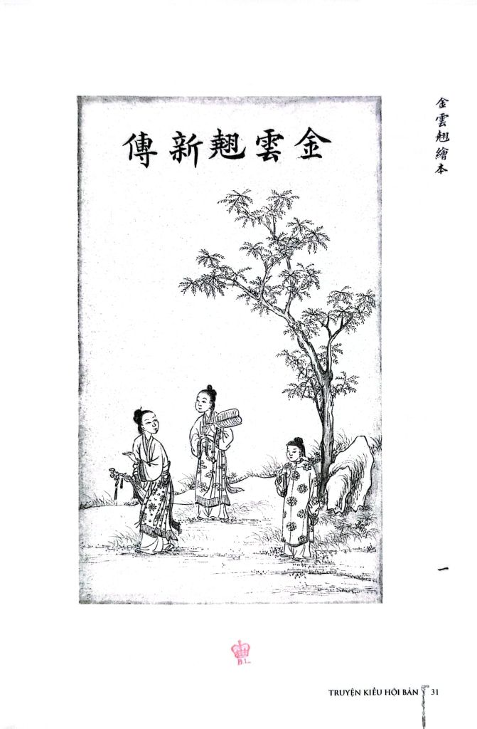 1. Ấn bản Truyện Kiều hội bản (Truyện Kiều có tranh minh họa) được dựng lại dựa trên ấn bản Truyện Kiều hội bản 1894 – đây là ấn bản được lưu trữ tại Thư viện Anh Quốc và có giả thiết cho rằng do vua Tự Đức thực hiện – dòng chữ đỏ thể hiện phần tóm lược có thể là “châu phê” của vua Tự Đức